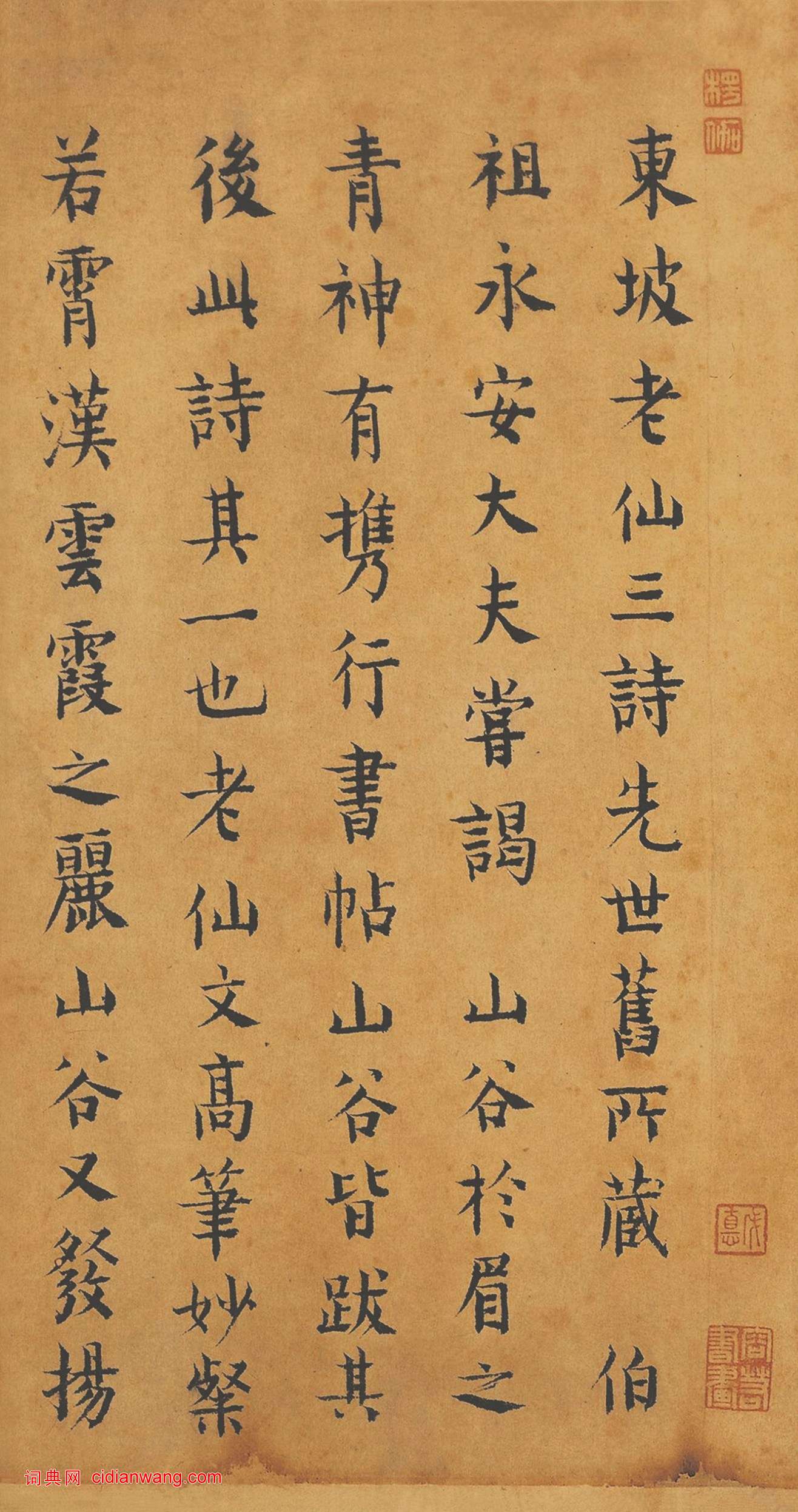 張縯題《蘇軾寒食帖》,楷書,台北故宮博物院藏。