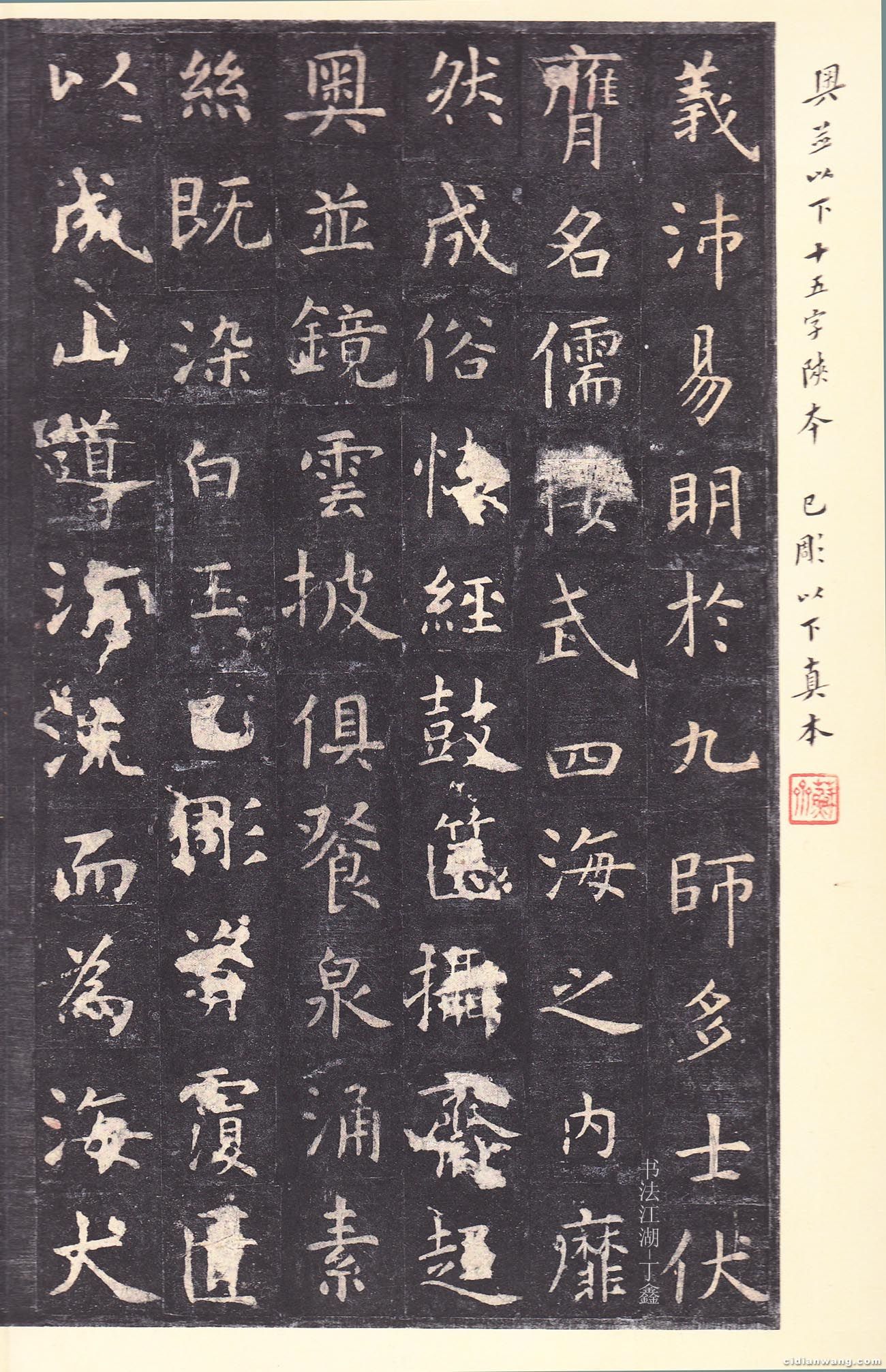 書法欣賞魏晉書法唐朝書法宋朝書法元朝書法明朝書法清朝書法近現代書法字典網>> 歷代書法>> 隋唐>> 虞世南《孔子廟堂碑》(6)正文 虞世南《孔子廟堂碑》(6)作者:虞世南 書體:楷書 首 頁 上一頁 1 2 3 4 5 6 7 8 下一頁 尾 頁虞世南的相關書法作品:虞世南《汝南公主墓誌》 虞世南《潘六帖》 虞世南《汝南公主墓誌》 虞世南行草《疲朽帖》 虞世南《虞摹蘭亭序》 虞世南《大運帖》 虞世南《孔子廟堂碑》 虞世南·破邪論序 虞世南《去月帖》 相關文章:柳公權行書《蘭亭詩》卷 (行書)唐柳公權《蘭亭詩》卷(傳),絹本,行書,縱26.5cm,橫365.3cm。北京故...書法無“韻”,只能是俗黃庭堅《花氣薰人帖》宋代書法家黃庭堅曾經這樣論述:“書畫以韻為主”“書者能以韻觀...歐陽詢《張翰帖》 (行書)【釋文】張翰字季鷹,吳郡人。有清才,善屬文,而縱任不拘,時人號之爲江東步兵。後謂...王羲之行書《敬倫帖》2種 (行書)《敬倫帖》又名《九月三日帖》。4行,41字。高29厘米。行書。入刻《寶晉齋帖》。...沈周《聲光帖》 (行書)【釋文】向自金仲,寄至蘇合丸,珍佩、珍佩。日來知德與位稱聲光,向隆可見,德門舊族...文徵明行書《致華氏手札冊》 (行書)文徵明尺牘書法精品《致華氏手札冊》八通,七通致華泮,一通致華雲。無錫博物館藏品。...趙孟頫行楷結構92法趙孟頫能在書法上獲得如此成就,是和他善於吸取別人的長處分不開的。尤為可貴的是宋元...譚延闓行書《風流罨畫七言聯》 (行書)譚延闓《行書風流罨畫七言聯》紙本行書 147x49cm×2 浙江省餘杭博物院藏...傅山《草書憑高瞰迥天怡心七言詩帖》 (草書)傅山 《草書憑高瞰迥天怡心七言詩帖》軸 紙本 113.5cm×53.5cm...文徵明《草書詩卷》 (草書)文徵明《草書詩卷》,紙本,縱20.9厘米,橫11厘米。書於世宗嘉靖八年(1529...
