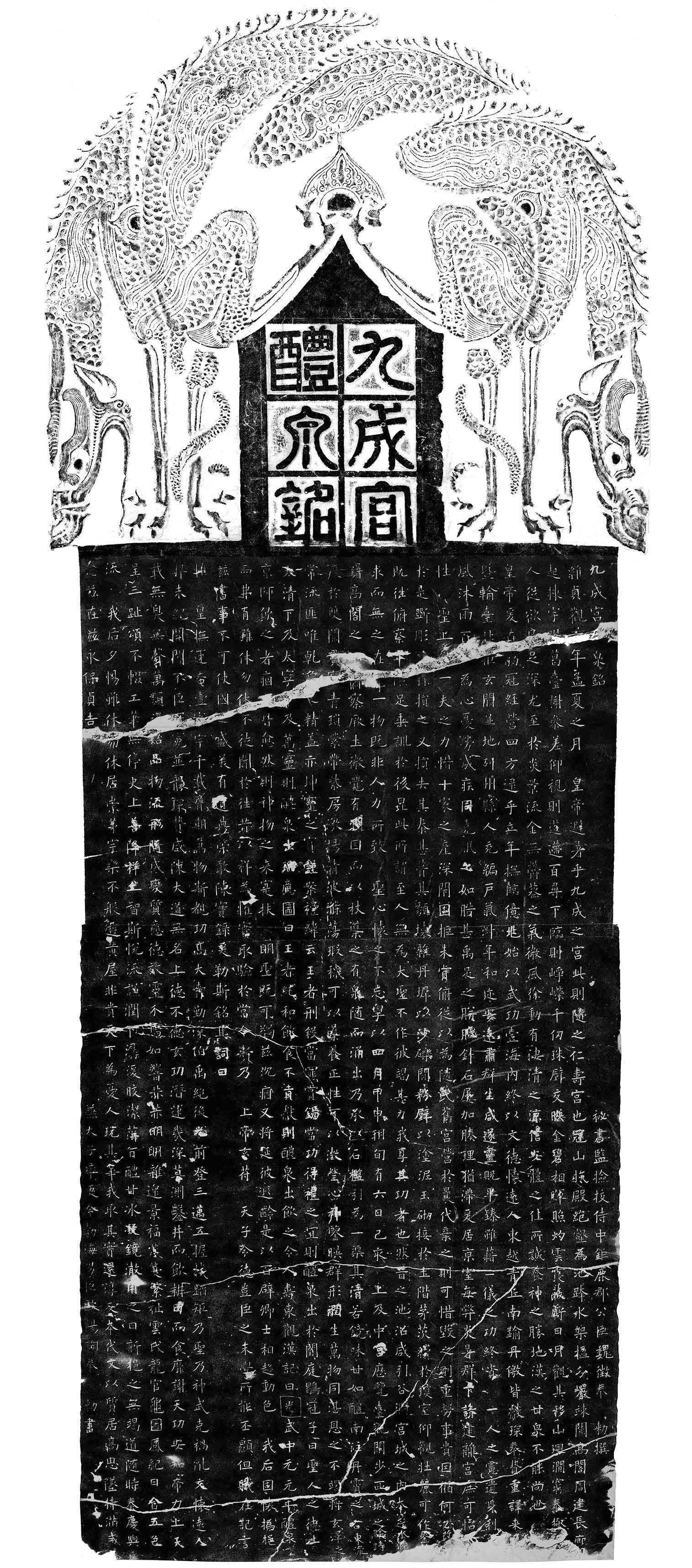秘書監檢校侍中鉅鹿郡公臣魏徵奉敕撰,維貞觀六年孟夏之月,皇帝避暑乎九成之宮,此則隨之仁壽宮也。冠山抗殿,絕壑為池,跨水架楹,分岩聳闕,高閣周建,長廊四起,棟宇膠葛,台榭參差。仰視則迢遞百尋,下臨則崢嶸千仞,珠璧交映,金碧相暉,照灼雲霞,蔽虧日月。觀其移山回澗,窮泰極侈,以人從欲,良足深尤。至於炎景流金,無鬱蒸之氣,微風徐動,有淒清之涼,信安體之佳所,誠養神之勝地,漢之甘泉不能尚也。皇帝爰在弱冠,經營四方,逮乎立年,撫臨億兆,始以武功壹海內,終以文德懷遠人。東越青丘,南逾丹儌 ,皆獻琛奉贄,重譯來王,西暨輪台,北拒玄闕,並地列州縣,人充編戶。氣淑年和,邇安遠肅,群生鹹遂,靈貺畢臻,雖藉二儀之功,終資一人之慮。遺身利物,櫛風沐雨,百姓為心,憂勞成疾,同堯肌之如臘,甚禹足之胼胝,針石屢加,腠理猶滯。爰居京室,每弊炎暑,群下請建離宮,庶可怡神養性。聖上愛一夫之力,惜十家之產,深閉固拒,未肯俯從。以為隨氏舊宮,營於曩代,棄之則可惜,毀之則重勞,事貴因循,何必改作。於是斫雕為樸,損之又損,去其泰甚,葺其頹壞,雜丹墀以沙礫,間粉壁以塗泥,玉砌接於土階,茅茨續於瓊室。仰觀壯麗,可作鑒於既往,俯察卑儉,足垂訓於後昆。此所謂至人無為,大聖不作,彼竭其力,我享其功者也。 然昔之池沼,鹹引谷澗,宮城之內,本乏水源,求而無之,在乎一物,既非人力所致,聖心懷之不忘。粵以四月甲申朔旬有六日己亥,上及中宮,歷覽台觀,閒步西城之陰,躊躇高閣之下,俯察厥土,微覺有潤,因而以杖導之,有泉隨而湧出,乃承以石檻,引為一渠。其清若鏡,味甘如醴,南注丹霄之右,東流度於雙闕,貫穿青瑣,縈帶紫房,激揚清波,滌盪瑕穢,可以導養正性,可以澄瑩心神。鑒映群形,潤生萬物,同湛恩之不竭,將玄澤於常流,匪唯乾象之精,蓋亦坤靈之寶。謹案:《禮緯》云:王者刑殺當罪,賞錫當功,得禮之宜,則醴泉出於闕庭。《鶡冠子》曰:聖人之德,上及太清,下及太寧,中及萬靈,則醴泉出。《瑞應圖》曰:王者純和,飲食不貢獻,則醴泉出,飲之令人壽。《東觀漢記》曰:光武中元元年,醴泉出京師,飲之者痼疾皆愈。然則神物之來,寔扶明聖,既可蠲茲沉痼,又將延彼遐齡。是以百辟卿士,相趨動色,我後固懷撝挹,推而弗有,雖休勿休,不徒聞於往昔,以祥為懼,實取驗於當今。斯乃上帝玄符,天子令德,豈臣之末學所能丕顯。但職在記言,屬茲書事,不可使國之盛美,有遺典策,敢陳實錄,爰勒斯銘。其詞曰:
