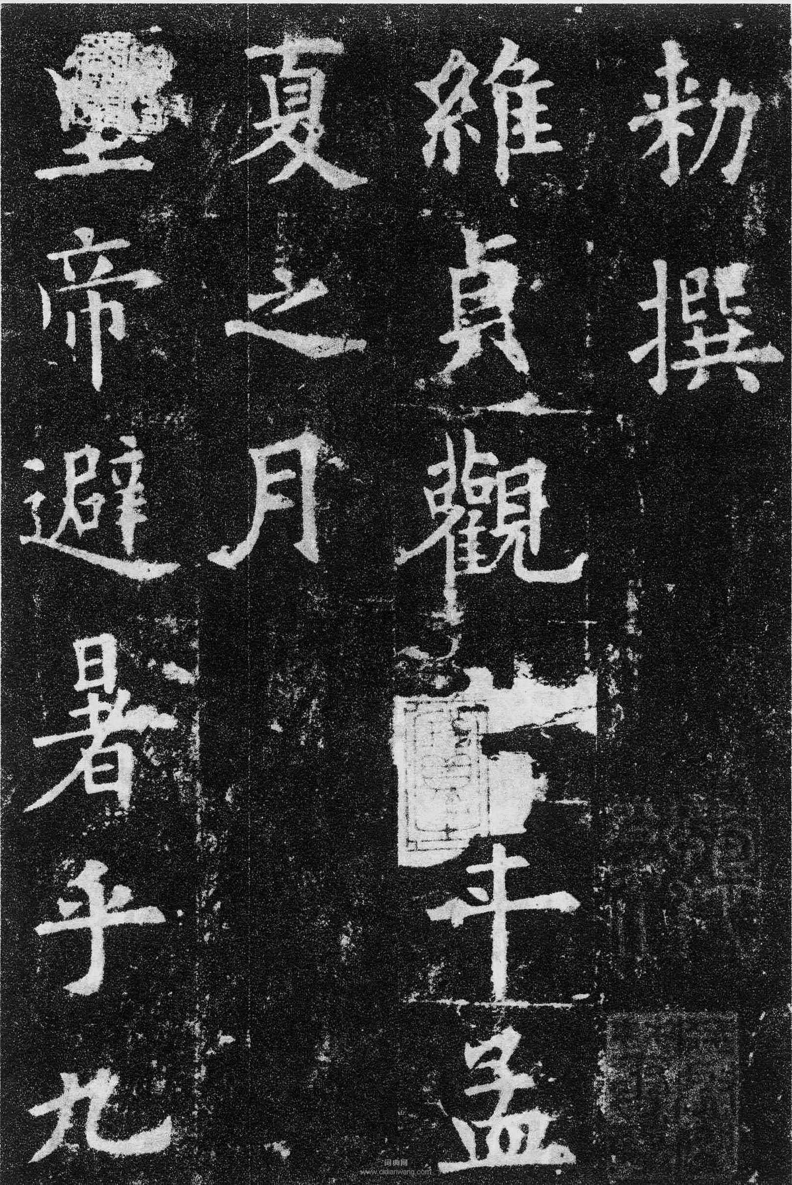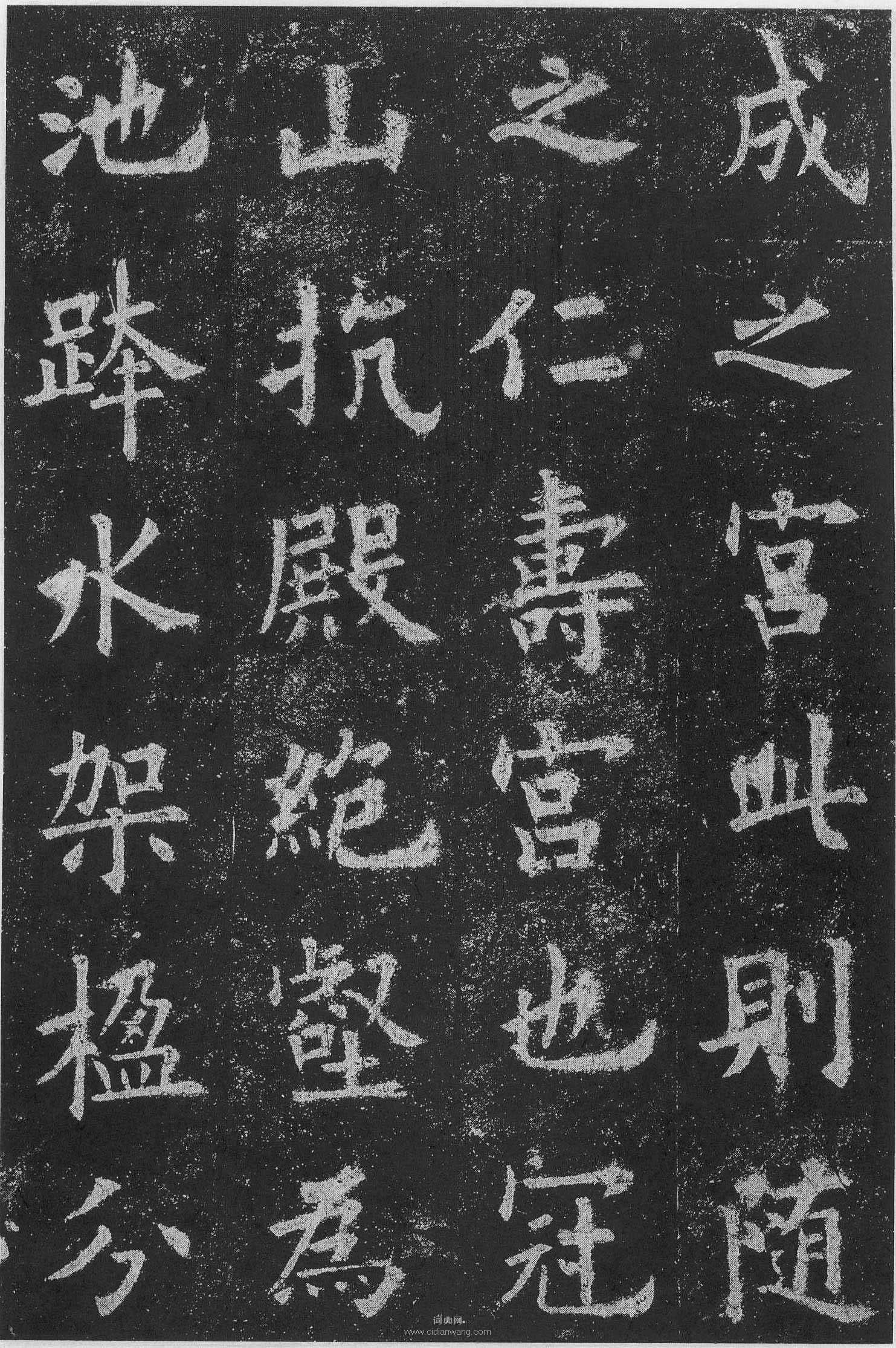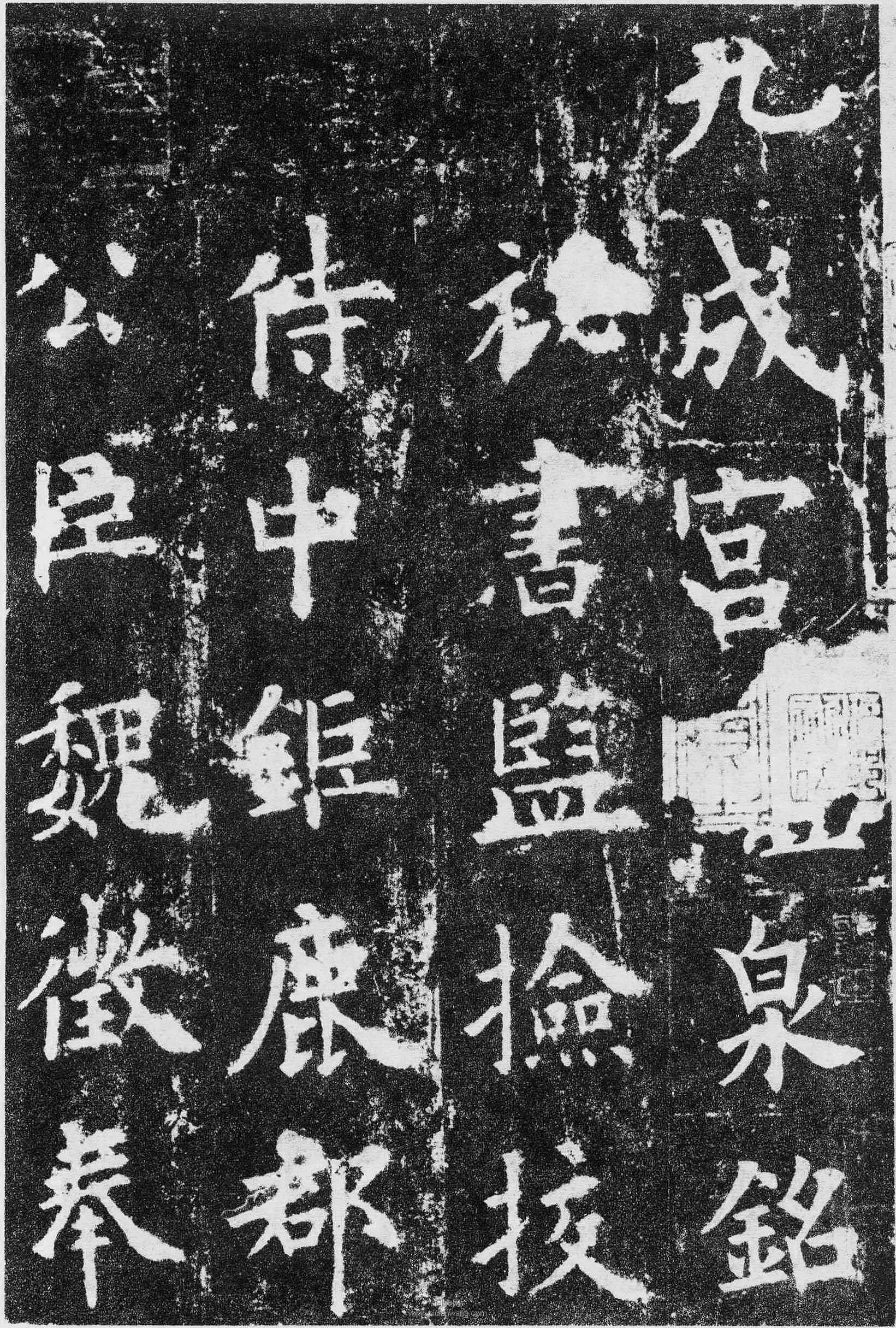 九成宮醴泉銘由魏徵撰文,歐陽詢正書。 記述唐太宗在九成宮避暑時發現醴泉之事。筆法剛勁婉潤,兼有隸意,是歐陽詢晚年經意之作,歷來為學書者推崇。