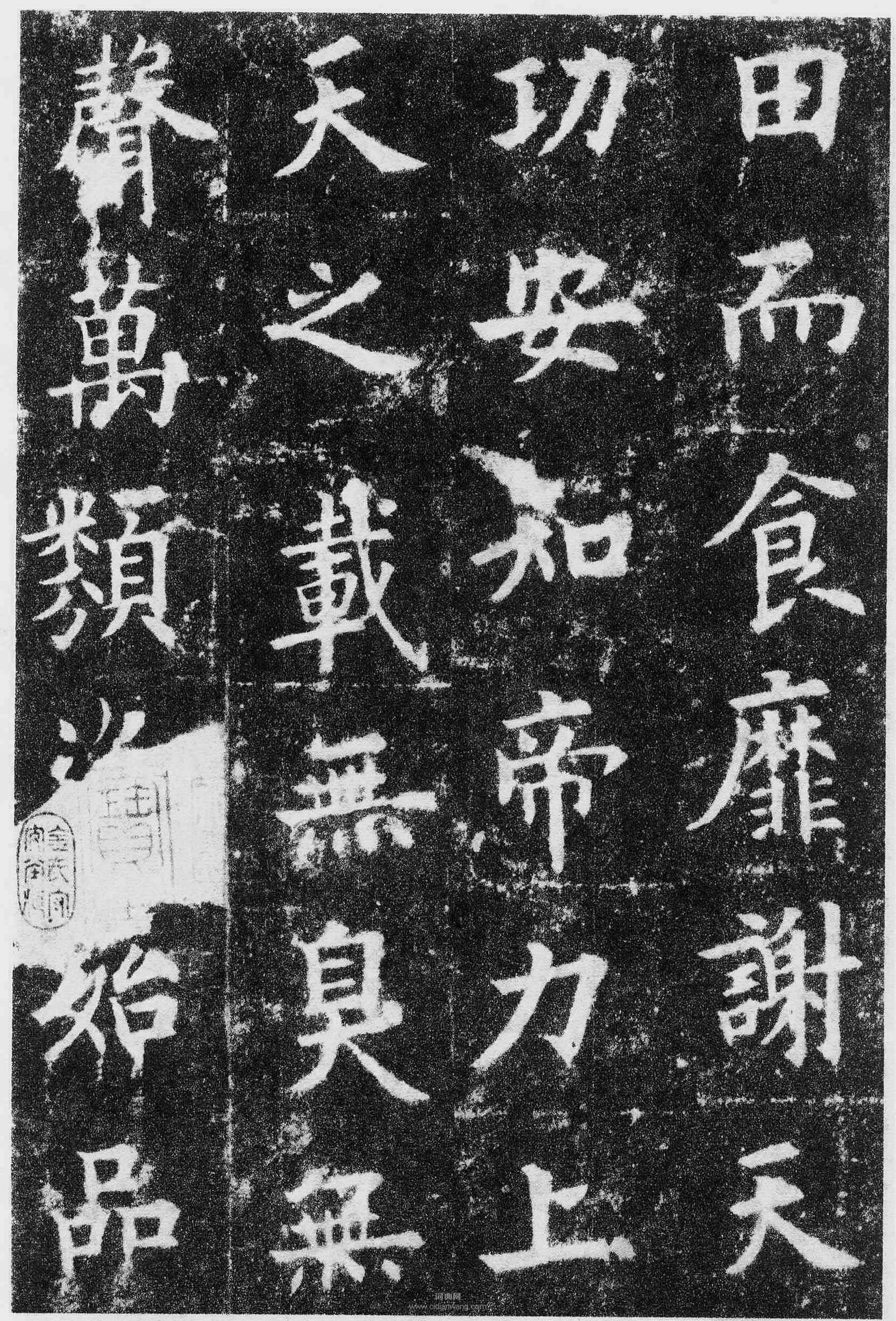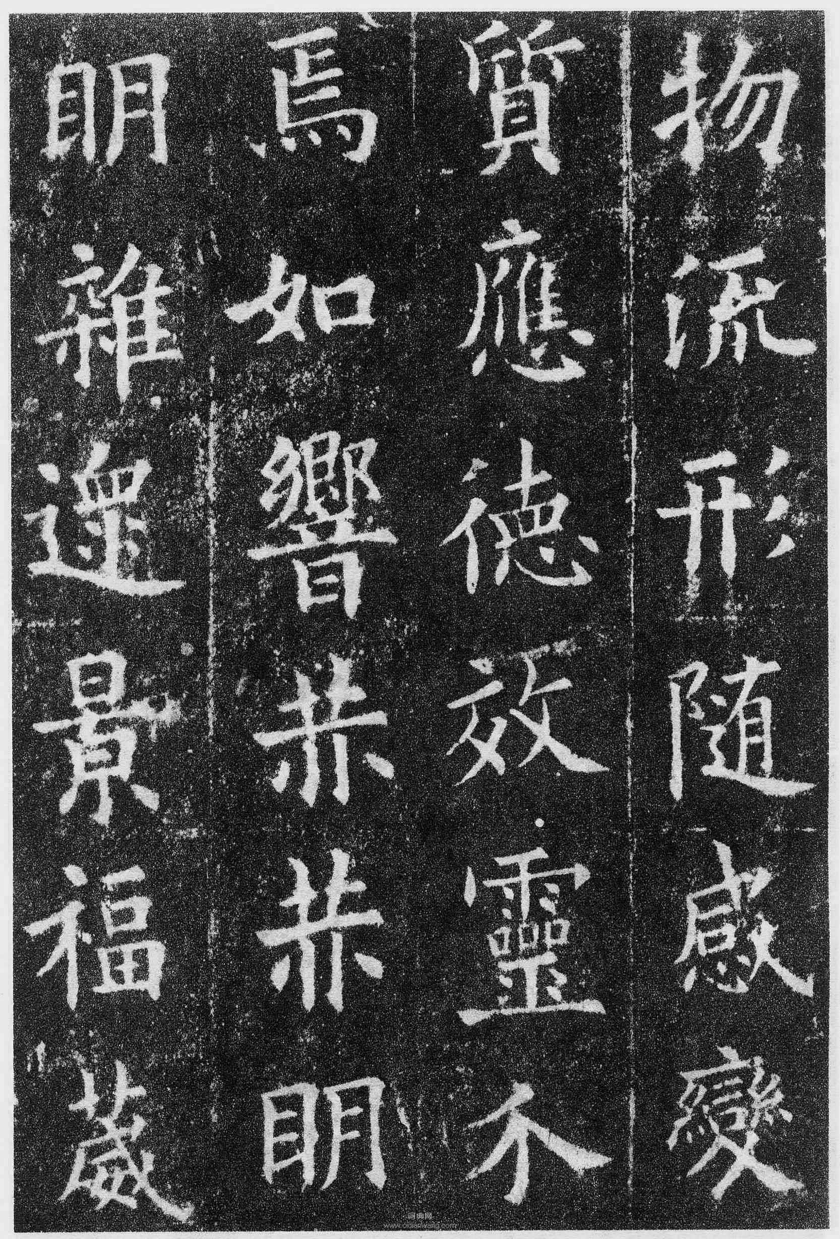 唯皇撫運,奄壹寰宇,千載膺期,萬物斯睹,功高大舜,勤深伯禹,絕後光前,登三邁五。握機蹈矩,乃聖乃神,武克禍亂,文懷遠人,書契未紀,開闢不臣,冠冕並襲,琛贄鹹陳。大道無名,上德不德,玄功潛運,幾深莫測,鑿井而飲,耕田而食,靡謝天功,安知帝力。上天之載,無臭無聲,萬類資始,品物流形,隨感變質,應德效靈,介焉如響,赫赫明明。雜沓景福,葳蕤繁祉,雲氏龍官,龜圖鳳紀,日含五色,烏呈三趾,頌不輟工,筆無停史。上善降祥,上智斯悅,流謙潤下,潺湲皎潔,萍旨醴甘,冰凝鏡澈,用之日新,挹之無竭。道隨時泰,慶與泉流,我後夕惕,雖休弗休,居崇茅宇,樂不般游,黃屋非貴,天下為憂。人玩其華,我取其實,還淳反本,代文以質,居高思墜,持滿戒溢,念茲在茲,永保貞吉。