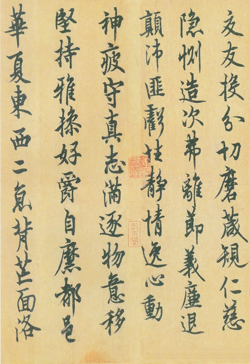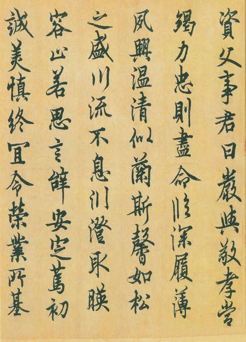 書法欣賞魏晉書法唐朝書法宋朝書法元朝書法明朝書法清朝書法近現代書法字典網>> 歷代書法>> 隋唐>> 歐陽詢《 千字文》(3)正文 歐陽詢《 千字文》(3)作者:歐陽詢 書體:行書 首 頁 上一頁 1 2 3 4 5 6 下一頁 尾 頁歐陽詢的相關書法作品:歐陽詢《張翰帖》 歐陽詢·小楷黃帝陰符經 歐陽詢《 千字文》 歐陽詢楷書《郭雲墓誌》 歐陽詢小楷《心經》 歐陽詢《卜商讀書帖》 歐陽詢《定武蘭亭序》吳炳舊藏本 歐陽詢楷書《皇甫誕碑》修複本 歐陽詢行書《定武本蘭亭》宋拓本 相關文章:趙孟頫《相州晝錦堂記》 (行書)趙孟頫《相州晝錦堂記》卷,32.5×173.4。台北故宮博物院藏。本幅書歐陽修...趙佶草書《千字文》 (草書)趙佶《草書千字文》描金雲龍箋 31.5×1172cm 宣和四年(1122年)遼...新莽篆書《青銅詔版》 (篆書)新莽時期 《青銅詔版》青銅 25.9×25.7cm 上海博物館藏 由上海博物館...米芾集字中秋詩詞米芾,字元章,號襄陽漫士、海岳外史。祖籍山西,遷居襄陽,有“米襄陽”之稱。史傳說...沈周·跋陸游自書詩卷 (行書)沈周《跋陸游自書詩卷》,行書,紙本,遼寧省博物館藏。釋文:放翁詩大類石湖,書法亦...文徵明行書《自書五言詩扇》 (行書)文徵明《行書自書五言詩扇》金箋行書 19.1×55cm 北京故宮博物院藏釋文:...傅山楷書《竹雨茶煙聯》 (楷書)傅山《竹雨茶煙聯》軸 楷書 紙本 225×44cm×2 山西晉祠博物館藏 ...蘇軾行書《次韻秦太虛見戲耳聾詩帖》 (行書)蘇軾《次韻秦太虛見戲耳聾詩帖》,行書,台北故宮博物院藏。【釋文】君不見詩人借車無...張瑞圖草書《郭璞遊仙詩》 (草書)張瑞圖《草書郭璞遊仙詩》, 遼寧省博物館藏。 此為張瑞圖草書節錄晉代郭璞的《遊仙...王鐸行書《杜甫戲呈楊四員外綰詩軸》 (行書)王鐸《行書杜甫戲呈楊四員外綰詩軸》綾本行書 235×54.7cm 清順治四年(...