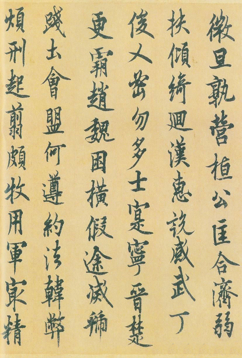 書法欣賞魏晉書法唐朝書法宋朝書法元朝書法明朝書法清朝書法近現代書法字典網>> 歷代書法>> 隋唐>> 歐陽詢《 千字文》(4)正文 歐陽詢《 千字文》(4)作者:歐陽詢 書體:行書 首 頁 上一頁 1 2 3 4 5 6 下一頁 尾 頁歐陽詢的相關書法作品:歐陽詢《 千字文》 歐陽詢草書千字文 歐陽詢《夢奠帖》 歐陽詢《九成宮醴泉銘》高清拓片 歐陽詢·小楷黃帝陰符經 歐陽詢·虞恭公碑 歐陽詢《卜商讀書帖》 歐陽詢行書《仲尼夢奠帖》 歐陽詢楷書《郭雲墓誌》 相關文章:趙佶楷書《怪石詩帖》 (楷書)趙佶《怪石詩帖》紙本 楷書 34.4×42.2cm 台北故宮博物院藏 【釋文】...楊法《隸書五言聯》 (隸書)楊法《隸書五言聯》 106.5×30.5cm×2上海朵雲軒 十五周年暨200...徐渭《墓表賦七律詩》 (草書)【釋文】朝廷久罷孝廉科,只尺公車奈若何。墓道且須鐫石去,關門終見棄儒過。寸心落日...孫星衍《篆書軸》 (篆書)孫星衍《篆書軸》紙本篆書 163.4×60.4cm 北京故宮博物院藏釋文:聖人...趙構·徽宗文集序 (楷書)趙構楷書《徽宗文集序》(局部),紙本,縱27.4厘米,橫(全長)137.0厘米。...王穉登·義興雜詩冊 (行書)王穉登《義興雜詩》冊,紙本,縱二四點八厘米、橫一五點二厘米,計二五頁,每頁四行,...民初李海峰楷書《觀音殿記》 (楷書)這是清末民初書家李海峰的作品,商賈為了賺錢才冠以趙孟頫書。李海峰的作品還有“五柳...趙昚·漁父詩團扇 (行書)宋孝宗趙昚《漁父詩團扇》,23.5×25.4cm。美國大都會藝術博物館藏(顧洛...如何提高書法臨摹的字形準確性提高臨摹的字形準確性基礎知識普及:一、外輪廓法二、重心法三、中宮法四、主筆法五、...金農漆書《墨說蜀人景煥立軸》 (隸書)漆書墨說立軸 紙本 縱84.9厘米 橫44.7厘米 揚州博物館藏釋文:蜀人景煥文...