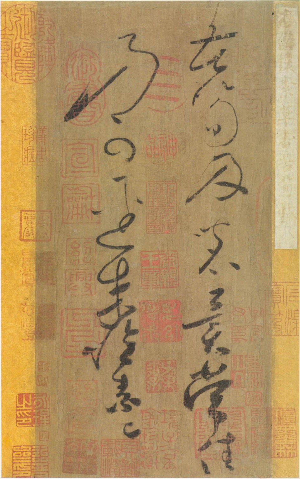 書法欣賞魏晉書法唐朝書法宋朝書法元朝書法明朝書法清朝書法近現代書法字典網>> 歷代書法>> 隋唐>> 懷素《苦筍帖》正文 懷素《苦筍帖》作者:懷素 書體:草書 【釋文】苦筍及茗異常佳,乃可逕來。懷素上。懷素《苦筍帖》卷,草書,絹本,無年款。縱25.1厘米,橫12厘米。上海博物館藏。 《苦筍帖》文字不多,總共才l4字,字圓鋒正,精練流逸。不僅能使我們觀賞到那嫻熟的筆法和行雲施雨、走蛇舞龍般的線條之美,同時還能直接感受到作者書寫時的內在氣質。引首:乾隆“醉僧逸翰”。帖後有【宋】米友仁,【明】項元汴、李佐跋。著錄於《妮古錄》、《書畫記》、《平生壯觀》、《大觀帖》、《詒晉齋帖》、《三希堂續帖》。懷素的相關書法作品:懷素草書《佛說四十二章經》 懷素《小草千字文》 懷素《苦筍帖》 懷素草書《聖母帖》卷宋拓,八大山人藏 懷素草書《自敘帖》 懷素草書《食魚帖 》 懷素大草《千字文》宋拓 懷素草書《藏真律公二帖》 懷素·論書帖 相關文章:唐楷書《董秀墓誌》 (楷書)《董秀墓誌》全稱《唐故董府君墓志銘》。唐開元三年(715)二月八日入土,公元20...蘇軾行書《次韻秦太虛見戲耳聾詩帖》 (行書)蘇軾《次韻秦太虛見戲耳聾詩帖》,行書,台北故宮博物院藏。【釋文】君不見詩人借車無...吳昌碩篆書臨《石鼓文》 (篆書)吳昌碩(1844.8.1 —1927.11.29),原名俊,字昌碩,別號缶廬、苦...王時敏隸書《錄東坡語軸》 (隸書)王時敏《隸書錄東坡語軸》紙本隸書 72.5× 50.5cm 美國弗利爾美術館藏...黃侃《篆書橫披》 (篆書)黃侃《篆書橫披》34×106cm 1926年 湖北省博物館藏 釋文:其人敦龐質...米芾《鄉石帖》 (行書)【釋文】新得紫金右軍 鄉石。力疾書數 日也。吾不來。果不 復來用此石矣。 元章。...斷臂人張文佑書法欣賞 (行書)張文佑,字德輔,號月台經生。1970年生,河南襄城人,中國書法家協會會員。張文佑...黃庭堅行書《荊州帖》 (行書)黃庭堅《荊州帖》(致公蘊知縣宣德執事尺牘) 紙本行書 31.2×43.2cm ...文徵明行書《朱懋功五十壽頌卷》 (行書)文徵明行書《朱懋功五十壽頌卷》,本手卷為紙本,長為248厘米,寬為24.5厘米。...李應楨《雜錄冊頁》 (小楷)李應楨《雜錄冊頁》,小楷,後有祝允明跋文。現藏朵雲軒。李應楨(1431-1493...