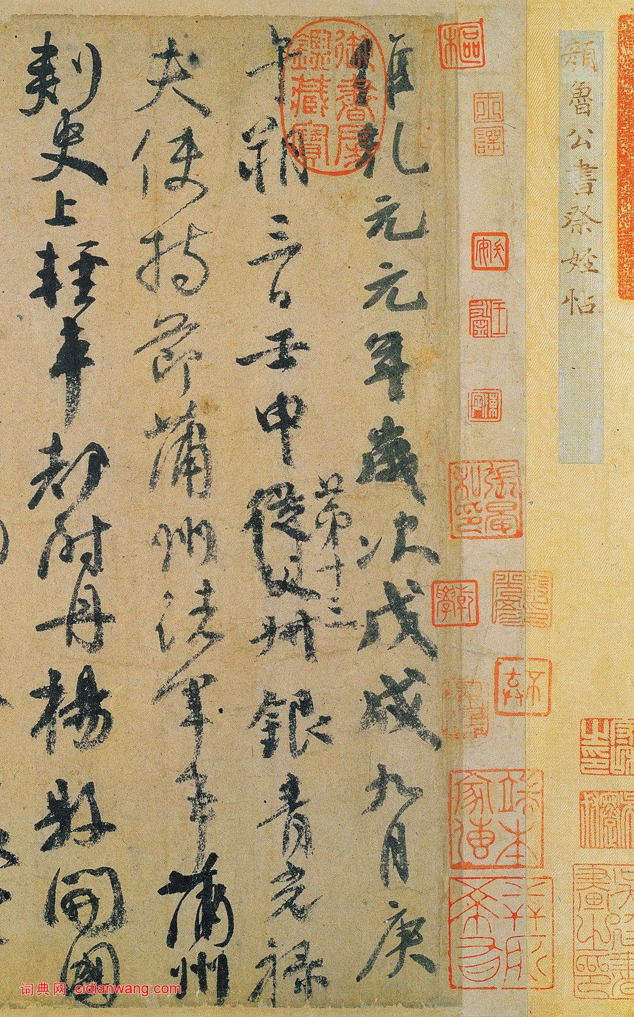 因為此稿是在極度悲憤的情緒下書寫,顧不得筆墨的工拙,故字隨書家情緒起伏,純是精神和平時工力的自然流露。這在整個書法史上都是不多見的。可以說,《祭侄文稿》是極具史料價值和藝術價值的墨跡原作之一,至為寶貴。