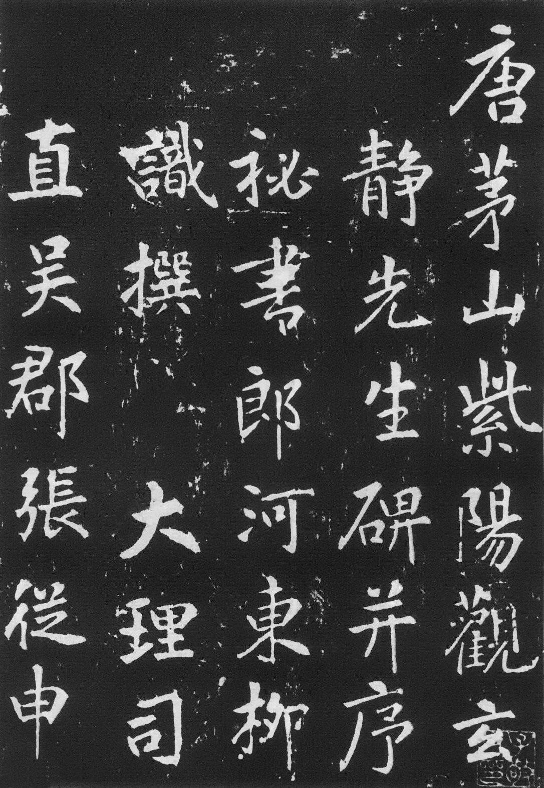 玄靜先生李含光,唐江都人,本名弘。以清行度為道士,居茅山,天寶中玄宗皇帝賜號玄靜。柳識,字方明,工文章。張從申,吳郡人。兄弟四人並工書,皆得右軍風規,時人謂之張氏四龍。以張從申最善書,而此碑又為張書中最烜赫者,在唐行書中極得名,拓本流傳甚少。