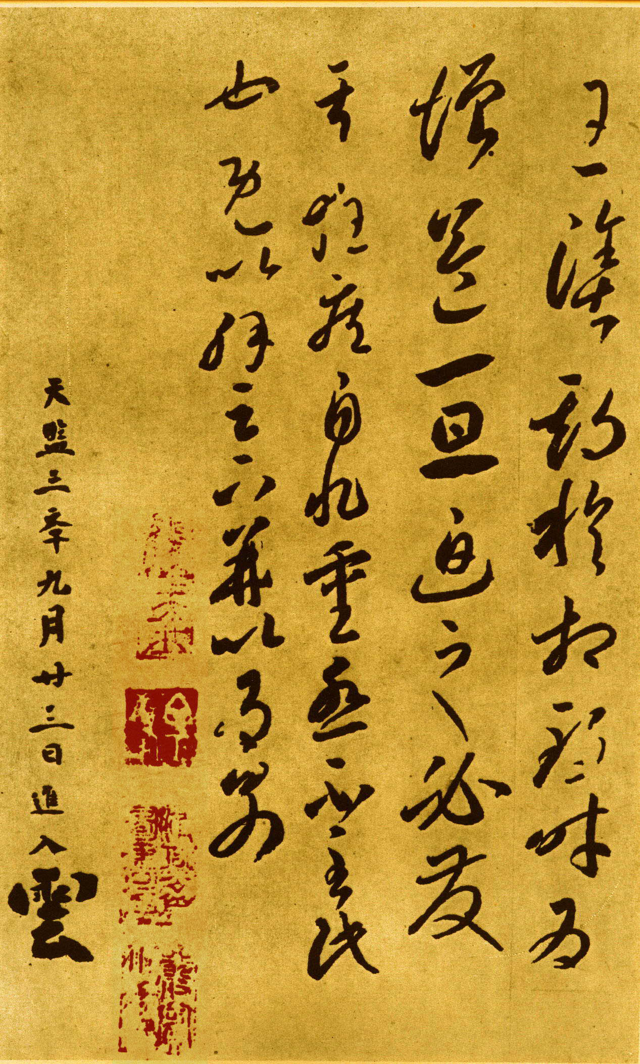 書法欣賞魏晉書法唐朝書法宋朝書法元朝書法明朝書法清朝書法近現代書法字典網>> 歷代書法>> 隋唐>> 李懷琳·嵇康與山巨源絕交書(16)正文 李懷琳·嵇康與山巨源絕交書(16)作者:李懷琳 書體:草書 首 頁 上一頁 7 8 9 10 11 12 13 14 15 16 相關文章:鮮于樞行書《王安石雜詩卷》 (行書)鮮于樞《王安石雜詩卷》縱50厘米 橫1025厘米 遼寧博物館藏鮮于樞《王安石雜詩...蘇軾行書《獲見帖 》《致長官董侯尺牘》 (行書)此帖又名《致長官董侯尺牘》。蘇軾書於元豐五年(1082)。紙本。行書,信札一則。...鄭板橋·行書九言聯 (行書)釋文:霜熟稻粱肥幾村農唱,燈紅樓閣迥一片書聲。書為翔老年學長兄,板橋鄭燮。楊凝式《盧鴻草堂十志圖題跋》 (行書)《盧鴻草堂十志圖題跋》釋文:右覽前晉留書記左郎中家舊傳盧浩然隱君嵩山十志。盧本名...鄭簠《隸書五言詩》 (隸書)鄭簠《隸書五言詩》,香港藝術館虛白齋藏。釋文:仙宮雲箔卷,露出玉簾鉤。清光無所贈...楊凝式·盧鴻草堂十志圖跋 (行書)《盧鴻草堂十志圖跋》,紙本,行書。台北故宮博物院藏。後漢天福十二年丁未(947年...文徵明行書《太液池詩》軸 (行書)文徵明《太液池詩》軸 縱344厘米、橫96.4厘米。行書 紙本釋文: 泱漭滄池混...王寵草書《致石壁尊兄書札》 (草書)王寵《致石壁尊兄書札》頁 台北故宮博物院藏 【釋文】違久馳慕。耿耿。承使者觸雨存...來楚生行書《臨黃道周榕壇問業軸》 (行書)來楚生《臨黃道周榕壇問業軸》紙本行書 105×51cm×2 1941年書 上...鍾紹京小楷墨跡《 轉輪聖王經》 (小楷)自從佛教傳入中土以後,寫經書法應運 而生,以至於成為除壁畫、造像藝術之外又一 絢...