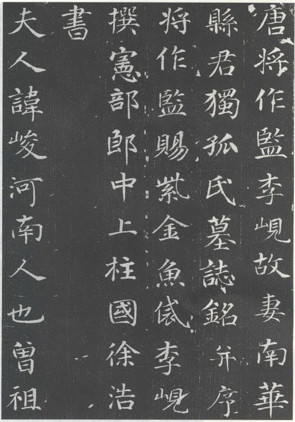 書法欣賞魏晉書法唐朝書法宋朝書法元朝書法明朝書法清朝書法近現代書法字典網>> 歷代書法>> 隋唐>> 徐浩·李峴妻獨孤峻墓誌正文 徐浩·李峴妻獨孤峻墓誌作者:徐浩 書體:楷書 徐浩所書《李峴妻獨孤峻墓誌》唐天寶十三年刻(754年),李峴撰,在2000年出土於西安市長安區郭杜鎮,同時出土還有《李峴墓誌》,現均藏於長安區博物館。徐浩書法在當時就是名震一時,與比他小六歲的顏真卿一同名震中唐,對後世影響深遠,尤其是對趙孟頫的影響更是非常直接,可以說是趙孟頫的隔代良師,這點完全可以從趙體字形與徐浩字形神似可以看出,只不過趙體去掉了徐浩字型的勁挺爽淨,而多了柔媚。1 2 3 4 5 6 7 8 下一頁 尾 頁徐浩的相關書法作品:徐浩楷書《朱巨川告身》 徐浩·不空和尚碑 徐浩《陳尚仙墓誌》 徐浩·李峴妻獨孤峻墓誌 相關文章:祝允明·小楷千字文 (小楷)此為祝允明所書之《千字文》,卷末題署年月為“成化丙午仲夏九日”,其時祝允明二十六...西漢敦煌漢簡 (草書)一九七九年在敦煌縣馬圈灣出土了大量漢簡,一千二百一十七枚,包括隸、草、行三種書體...梁錦英行草《鋼筆書法》字帖 (行草)梁錦英 (1936年3月----2005年2月4日),廣東德慶人,中國硬筆書法的...懷素·論書帖 (草書)【釋文】為其山不高,地亦無靈;為其泉不深,水亦不清;為其書不精,亦無令(今)名,...宰豐骨匕刻辭 (甲骨文)圖為商代一塊牛骨,匕首形。鑲嵌十四顆綠松石,相傳也為安陽出土。殷商時期甲骨文,多...書法知識100問,你能知道多少?1.什麼是甲骨文?甲骨文是指殷商時期刻在龜甲和獸骨上的文字。甲骨文多用刀刻成,有...華世奎楷書《清故文學任先生墓表》 (楷書)華世奎楷書欣賞《清故文學任先生墓表》華世奎(1863~1941)字啟臣,號璧臣。...北魏《魏故世宗宣武皇帝嬪墓誌》 (楷書)北魏《魏故世宗宣武皇帝嬪墓誌》,孝昌二年八月六日立。 銘文: 魏故世宗宣武皇帝...沈周《行書落花詩扇葉》 (行書)沈周《行書落花詩扇葉》灑金箋 18×48.3cm 浙江省博物館藏釋文:今日都...陳洪綬行書《致祝淵詩翰》 (行書)陳洪綬《致祝淵詩翰》紙本 26.9×9.9cm不等 約1643 浙江省博物館藏...
