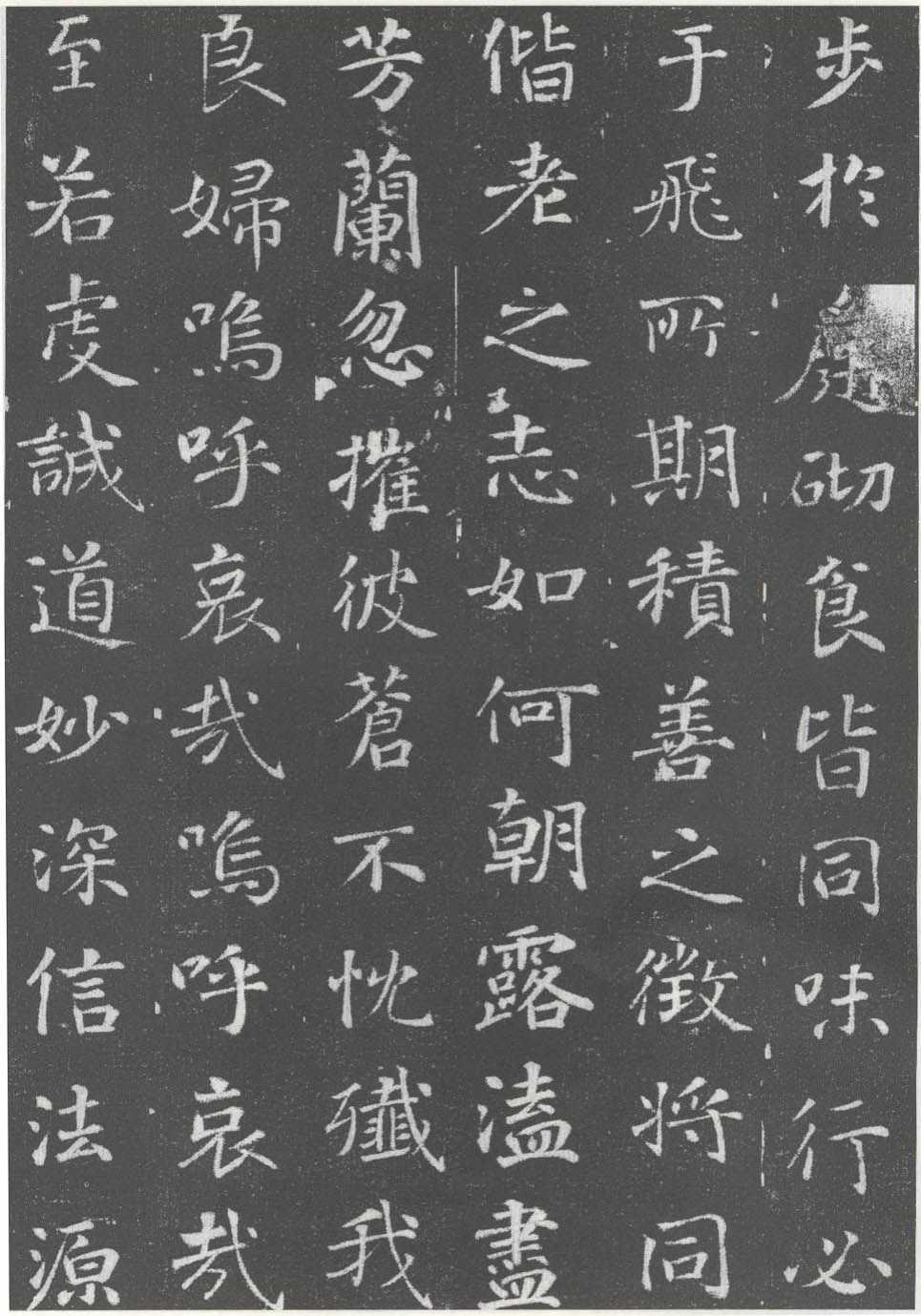 資源下載魏晉書法唐朝書法宋朝書法元朝書法明朝書法清朝書法近現代書法字典網>> 歷代書法>> 隋唐>> 徐浩·李峴妻獨孤峻墓誌(6)正文 徐浩·李峴妻獨孤峻墓誌(6)作者:徐浩 書體:楷書 首 頁 上一頁 1 2 3 4 5 6 7 8 下一頁 尾 頁徐浩的相關書法作品:徐浩·不空和尚碑 徐浩·李峴妻獨孤峻墓誌 徐浩楷書《朱巨川告身》 徐浩《陳尚仙墓誌》 相關文章:全國第一屆書法篆刻展覽-篆書部分1980年5月,全國第一屆書法篆刻展覽(國展)在瀋陽展出,現與大家分享由人民美術...楊沂孫篆書《蘇軾詩四條屏》 (篆書)楊沂孫《篆書蘇軾詩四條屏》紙本篆書 133×31.9cm×4 上海博物館藏釋...趙之謙《篆書潛夫論四條屏》 (篆書)趙之謙《篆書潛夫論四條屏》泥金箋本篆書 173.5×71cm×4 1872年...歐陽詢楷書《化度寺碑》宋拓全本 (楷書)歐陽詢《化度寺邕禪師塔銘》宋拓本 上海圖書館藏 海內孤本 國家一級文物《化度寺邕...馮夢龍楷書《跋顧隱亮像》 (楷書)馮夢龍《跋顧隱亮像》,楷書。南京博物院藏。馮夢龍《跋顧隱亮像》釋文:爾非儒,談諧...吳玉如小楷《臨樂毅論》 (小楷)吳玉如《臨樂毅論》小楷 1931年作 釋文:略 款識:辛未前三日臨。 鈐印:吳家...姜宸英行草《臨王獻之帖》 (行草)姜宸英《臨王獻之帖》紙本行草書 128×58cm 安徽省博物館藏釋文:獻之等再...唐寅行書《飲中八仙歌》 (行書)唐寅《自書詩》《飲中八仙歌》,風流瀟灑!釋文: 知章騎馬似乘船,眼花落井水底眠。...林散之跋黃賓虹《黃山臥遊》 (行書)▶釋文:黃山臥遊|前後雲海,一松一石無不入畫,撫琴動操,欲令眾山皆響。 虹叟林散...虞世南《鄭長官帖》 (行草)【釋文】鄭長官致問極真,而其三人恆不蕩蕩,將如何?故承後時有所異責。虞世南《鄭長...