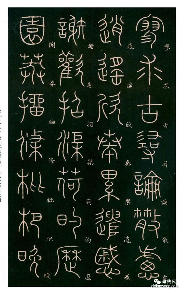 資源下載魏晉書法唐朝書法宋朝書法元朝書法明朝書法清朝書法近現代書法字典網>> 歷代書法>> 隋唐>> 李陽冰篆書《千字文》(楷篆對照版)(15)正文 李陽冰篆書《千字文》(楷篆對照版)(15)作者:李陽冰 書體:篆書 首 頁 上一頁 10 11 12 13 14 15 16 17 18 19 下一頁 尾 頁李陽凍的相關書法作品:李陽冰篆書《千字文》(楷篆對照版) 李陽冰篆書《三墳記》 李陽冰篆書《顏家廟碑額》 李陽冰篆書《城隍廟碑》 李陽冰篆書《拪先塋記》 李陽冰篆書《千字文》 李陽冰篆書《三墳碑》 李陽冰·滑台新驛記 李陽冰篆書《般若台銘》 相關文章:陳師曾《楷書臨王饒安碑軸》 (楷書)陳師曾《楷書臨王饒安碑軸》 134×34cm 紙本 上海博物館藏釋...40個學隸書技巧,隸書結構技法隸書,亦稱漢隸,是漢字中常見的一種莊重的字型,書寫效果略微寬扁,橫畫長而直畫短,...王羲之行書《頻有哀禍帖》 (行書)《頻有哀禍帖》摹本,紙本。縱26.9厘米。3行,20字。行書。字間傾側、俯仰、鉤...何紹基行書《側身獨立七言聯》 (行書)何紹基《行書側身獨立七言聯》 行書 湖南省長沙博物館藏釋文:側身天地更懷古,獨立...文徵明《草書七律立軸》 (草書)草書七律立軸 見於中國嘉德國際拍賣有限公司2005春季拍賣會中國古代書畫專場尺 ...東漢隸書《韓仁銘碑》 (隸書)《韓仁銘》 篆書碑額:漢循吏故聞熹長韓仁銘東漢隸書碑刻。 石碑篆額題《漢循吏故聞...沈曾植《行書龔自珍破戒草詩扇》 (行書)沈曾植《行書龔自珍破戒草詩扇》紙本行書 18.5×50cm 浙江省博物館藏 釋...陳介祺《篆書七言聯》 (篆書)陳介祺《篆書七言聯》。釋文:書味養心存赤氣,墨華傳古附青雲。簠齋陳介祺。楊維楨草書《溪頭流水泛胡麻七絕詩軸》 (草書)楊維楨 《草書“溪頭流水泛胡麻”七絕詩軸》 紙本草書 107.7×34.9cm...“江西才子”曾棨《贈王孟安詞》 (行書)聽過“江南四大才子”,“江西才子”倒是第一次聽說!書友們就好奇了,江西才子是誰?...