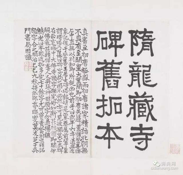 書法欣賞魏晉書法唐朝書法宋朝書法元朝書法明朝書法清朝書法近現代書法字典網>> 歷代書法>> 隋唐>> 元拓《隋龍藏寺碑》正文 元拓《隋龍藏寺碑》作者:不詳 書體:楷書 《隋龍藏寺碑》講述了龍藏寺碑,隋開皇六年(公元五八六年)恆州刺史王孝零為勸造龍藏寺所立。原碑現在河北正定龍興寺內。此碑未著書寫人姓名,其書體方整有致,字畫挺勁有力,與唐初的孟法師碑和雁塔聖教序相較,在書體結構和用筆上都有共同之處。因此在南北朝至唐的書法藝術發展史上,龍藏寺碑正處於承先啟後的地位。1 2 3 4 5 6 7 8 9 10 下一頁 尾 頁相關文章:譚鍾麟楷書《杭州文瀾閣碑》文瀾閣位於杭州西湖孤山南麓,浙江省博物館內。初建於清乾隆四十七年(公元1782年...王寵行草《名山時訪道五言詩》扇面 (行草)王寵《名山時訪道五言詩》扇面 紙本(金箋) 行草書 17.8 × 49.6 c...顏真卿楷書《顏勤禮碑》 (楷書)自署立於大曆十四年(779年)。楷書,碑文一通。175×90×22厘米。碑四...高士奇·跋歐陽詢《仲尼夢奠帖》 (楷書)高士奇跋歐陽詢《仲尼夢奠帖》,現藏於遼寧省博物館。沈尹默行書《澹靜廬詩剩》 (行書)此詩作者鎮海金磷叟,系晚清地方行政小縣令,詩中多描寫農村光景,風土人情,詞藻清新...笪重光《行書七律詩軸》 (行書)笪重光《行書七律詩軸》紙本行書 186.1×88cm 安徽省博物館藏釋文:仙殿...東漢隸書《石門頌》 (隸書)《石門頌》全稱《漢司隸校尉楗為楊君頌》。又稱《楊孟文頌》。東漢建和二年(148年...高鳳翰《草書詩軸》 (草書)高鳳翰《草書詩軸》 紙本草書 139×34.5cm 濟南市博物館藏釋文:大被生...朱熹行書《城南唱和詩卷》 (行書)朱熹《城南唱和詩卷》 紙本,手卷 31.5×275.5厘米。北京故宮博物院藏朱...歐陽詢·虞恭公碑 (楷書)《虞恭公碑》又名《溫彥博碑》,岑本文撰文,歐陽詢書,全碑計三十六行,每行七十七字...