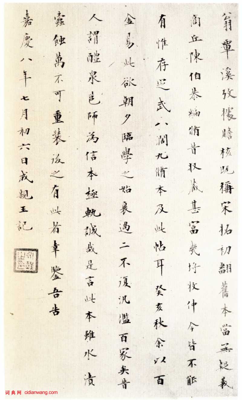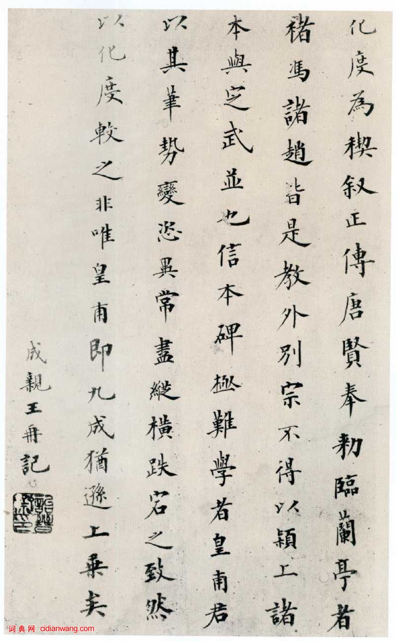 資源下載魏晉書法唐朝書法宋朝書法元朝書法明朝書法清朝書法近現代書法字典網>> 歷代書法>> 隋唐>> 歐陽詢楷書《化度寺碑》宋拓全本(14)正文 歐陽詢楷書《化度寺碑》宋拓全本(14)作者:歐陽詢 書體:楷書 首 頁 上一頁 6 7 8 9 10 11 12 13 14 15 下一頁 尾 頁歐陽詢的相關書法作品:歐陽詢隸書《房彥謙碑》 歐陽詢楷書《蘭亭記》 歐陽詢行書《仲尼夢奠帖》 歐陽詢《定武蘭亭序》吳炳舊藏本 歐陽詢行書《張翰思鱸帖》 歐陽詢隸書《大唐宗聖觀記》 歐陽詢草書《千字文》 歐陽詢《夢奠帖》 歐陽詢《 千字文》 相關文章:董其昌行草跋《張旭草書古詩四帖卷》 (行草)明代董其昌行書題跋《張旭草書古詩四帖卷》,遼寧省博物館藏。釋文:唐張長史書庾開府...洪亮吉《篆書家參詩在七言聯》 (篆書)洪亮吉《篆書家參詩在七言聯》紙本篆書 97.5×17cm×2 常州博物館藏 ...漢隸珍品《漢故雁門太守鮮于璜碑》 (隸書)漢隸珍品《漢故雁門太守鮮于璜碑》,亦稱《鮮于璜碑》,延熹八年(165)十一月立。...沈曾植《草書右軍桓公帖軸》 (草書)沈曾植《草書右軍桓公帖軸》紙本草書 143×39cm 德清縣博物館藏 釋文:得...鍾紹京·靈飛經 (小楷)《靈飛經四十三行墨跡本》,美國紐約大都會藝術博物館藏,每頁20.8×8.9cm...張雨·次韻天鏡上人送柑詩帖 (行書)張雨《次韻天鏡上人送柑詩帖》,紙本,26.5×29.4cm,無紀年。北京故宮博...弘一法師(李叔同)《晉譯大方廣佛華嚴經》選聯 (楷書)李叔同(1880—1942),又名李息霜、李岸、李良,譜名文濤,幼名成蹊,學名廣...宋克《閒居詩》 (草書)宋克《閒居詩》,草書。《閒居詩》釋文:負郭堂成水竹列,平生筆硯是鋤犁;性田所喜無...王寵小楷《為海濱先生書五言詩扇》 (小楷)王寵《為海濱先生書五言詩扇》 扇面 箋本 19×54cm 匡時2007春季藝術...柯九思·跋《馬圖》 (不詳)柯九思 跋《馬圖》。柯九思(1290—1343),字敬仲,號丹丘生,別號五雲閣吏...