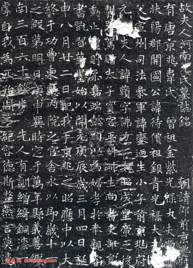 《元苹墓誌》大曆十一年(776),韋應物撰並書。青石質,42×44.5㎝,楷書,27行,滿行27字。