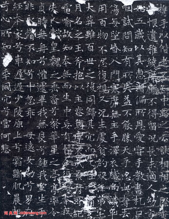 夫人懿皇魏之垂裔兮,粲華星之亭亭。率令德以歸我兮,婉潔豐乎淑貞。時冉冉兮歡遽畢,我無良兮鍾我室。生於庚兮歿於丙,歲俱辰兮壽非永。懵不知兮中忽乖,母遠女幼兮男在懷。不得久留兮與世辭,路經本家兮車遲遲。少陵原上兮霜斷肌,晨起踐之兮送長歸。釋空莊夢兮心所知,百年同穴兮當何悲。
