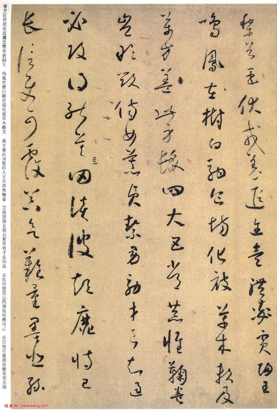 書法欣賞魏晉書法唐朝書法宋朝書法元朝書法明朝書法清朝書法近現代書法字典網>> 歷代書法>> 隋唐>> 懷素《小草千字文》(2)正文 懷素《小草千字文》(2)作者:懷素 書體:草書 首 頁 上一頁 1 2 3 4 5 6 7 8 下一頁 尾 頁懷素的相關書法作品:懷素草書《藏真律公二帖》 懷素《小草千字文》 懷素草書《自敘帖》 懷素《苦筍帖》 懷素·論書帖 懷素草書《聖母帖》卷宋拓,八大山人藏 懷素草書《佛說四十二章經》 懷素草書《食魚帖 》 懷素大草《千字文》宋拓 相關文章:三國曹魏碑刻《范巨卿碑》附題跋 (隸書)三國曹魏著名碑刻《范巨卿碑》,全稱《廬江太守範式碑》,三國魏青龍三年(235年)...中國古人書畫用什麼紙?導讀:除了宣紙,一般人能叫出品名的書畫與印刷紙恐怕沒有幾種。多數人想像中,古人科...釋擔當《草書扇面》 (草書)【釋文】過了溪橋遠市城,千峰一室足生平。亂雲雜霧都消盡,惟有紫香入腦清。擔當。釋...歐陽詢《九成宮醴泉銘》高清拓片 (楷書)九成宮醴泉銘(醴音lǐ, 醴泉意甜美的泉水)是唐代碑刻,公元632年鐫立於麟遊...司馬垔·跋范仲淹《道服贊》 (行書)【釋文】予嘗謂士君子能為光明俊偉之事業必先有高潔灑落之胸次為之地也範文正道服贊所...包世臣行草《錄內史與謝尚書書軸》 (行草)包世臣《行草書錄內史與謝尚書書軸》紙本行草書 132×55.5cm 山西省博物...老舍·華世奎 《南皮張氏兩烈女碑》拓片提字 (楷書)釋文:華世奎字璧臣祖籍江蘇無錫世居天津自幼勤學三十歲中舉同年步入仕途出任內閣閣丞...金琮·秋日山中寫懷詩 (行書)金琮《秋日山中寫懷詩》,行書。米芾《篋中帖》 (不詳)【釋文】南宮天機筆妙(鮮于樞書)芾篋中懷素帖如何。 乃長安李氏之物。 王起部、薛...徐悲鴻給齊白石的拜節信 (行書)下面這封信,是上世紀50年代初端午節的前一天,徐悲鴻附帶著拜節的禮品差人送給齊白...