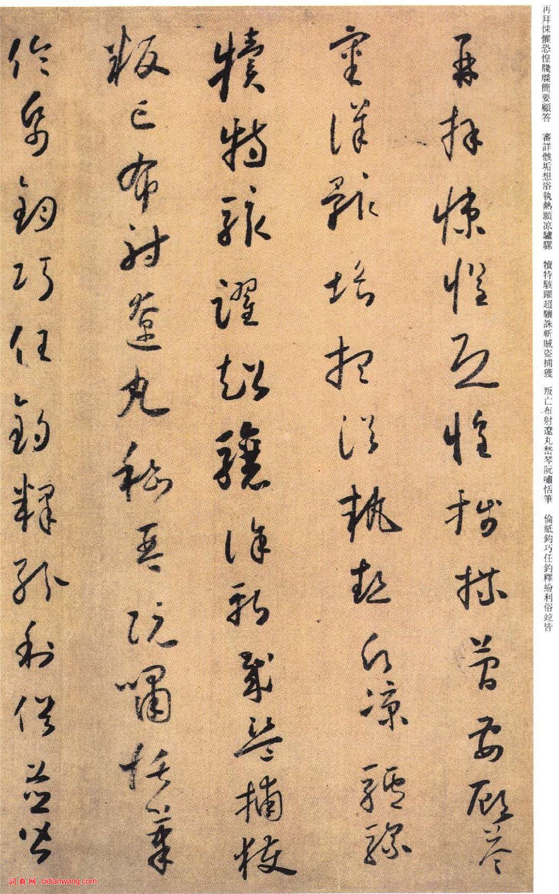 書法欣賞魏晉書法唐朝書法宋朝書法元朝書法明朝書法清朝書法近現代書法字典網>> 歷代書法>> 隋唐>> 懷素《小草千字文》(7)正文 懷素《小草千字文》(7)作者:懷素 書體:草書 首 頁 上一頁 1 2 3 4 5 6 7 8 下一頁 尾 頁懷素的相關書法作品:懷素《苦筍帖》 懷素《小草千字文》 懷素草書《佛說四十二章經》 懷素·論書帖 懷素草書《藏真律公二帖》 懷素草書《食魚帖 》 懷素草書《聖母帖》卷宋拓,八大山人藏 懷素草書《自敘帖》 懷素大草《千字文》宋拓 相關文章:唐寅行書《七言絕句四條屏》 (行書)明代唐伯虎行書作品欣賞《七言絕句四條屏》紙本,57.2×22cm×4,廣東省...倪瓚小楷《題周文英詩志傳》 (小楷)倪瓚小楷《題周文英詩志傳》 1372年 縱25.9厘米 橫26.2厘米 遼寧省博...董其昌《樂毅論》 (楷書)《樂毅論》董其昌書。紙本。縱 26公分,橫224.5公分。廣東省博物館藏。樂毅論...2017年米芾集字春聯 (行書)上聯:雞鳴曉旦下聯:燕舞陽春上聯:神猴辭歲下聯:金鳳迎春上聯:雄雞唱韻下聯:大地...楊維楨《宴於朱氏玉井香賦詩十有二韻行書卷》 (行書)楊維楨《宴於朱氏玉井香賦詩十有二韻行書卷》行書 30.5×53cm 香港中文大...何紹基《隸書軸》 (隸書)清 何紹基《隸書軸》 115.5×52.3cm 台北故宮博物院藏本幅隸書,筆力...盧中南楷書《白居易長恨歌》 (楷書)盧中南楷書《白居易長恨歌》寫於2010年12月。盧中南1950年生。中國書法家協...長沙窯詩文壺《上有東流水》 (行草)行草——青釉褐彩“上有東流水”詩文壺(局部) 殘高20.8厘米 底徑11厘米...王寵楷書題《唐寅溪山漁隱圖》 (楷書)王寵題《唐寅溪山漁隱圖》(疑)嘉靖二年(癸未1523年)台北故宮博物院藏 資料來...彭睿壦行草《村中看紅葉詩軸》 (行草)彭睿壦《行草村中看紅葉詩軸》 廣州市美術館(現廣州藝術博物院)藏釋文:樹亦令人艷...