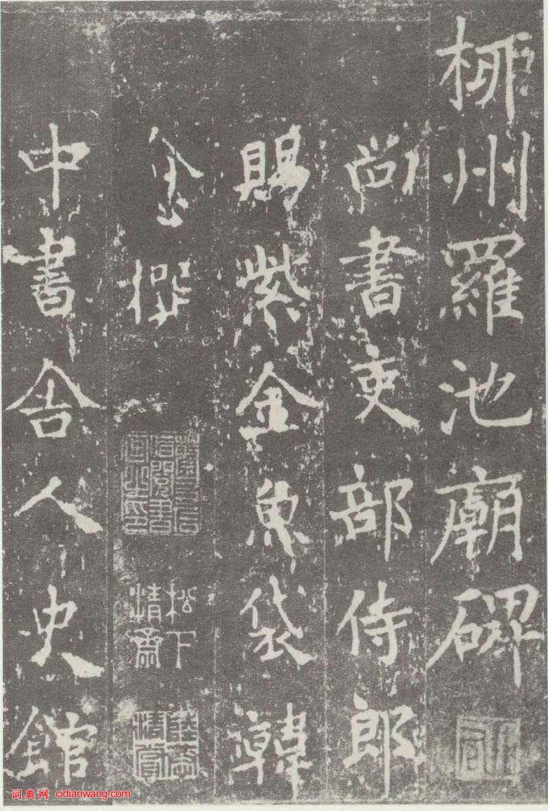 瀏覽此碑書法,氣息清勁圓潤、骨法神健,結字雖較為瘦削,然挺健秀朗,肉藏於筋,略無枯瘠之垢病。乍一看,近似柳(公權)書,但細察與柳書有著根本的區別,那就是柳書中宮過於內斂,緊縮得讓人心中發慌,沈書卻無此特徵,雖然中宮也稍作內斂,但總體來說,還是屬於較寬鬆的。另一個與柳書不同點即在結構上,沈氏書法結體多呈左低右高勢,且略向右欹側,當然,此碑書法也確實存在與柳氏書法相同的地方,其中豎彎鉤、點、撇、捺、懸針豎等用筆和一些字的結體如“言“字旁,“詔”、“柳”、“師”、“不”等與柳書如出一轍,究竟是誰影響了誰?請看王鐸跋此拓本的一句話“沈書寡覿,本虞永興,柳誠懸、歐率更,合為一家”。如果王鐸的話可信,顯然沈師承了柳,然據《舊唐書》柳公權本傳推測,柳(公權)小於沈傳師九歲,同時,本傳有一段話也耐人尋味,“公權初學王書,遍閱近代筆法,體勢勁媚,自成一家”。說不定這“近代筆法”里就包括沈傳師在內。如撿柳書《李晟碑》與《羅池廟碑》對照,用筆與結字即頗為仿佛。看來王鐸的沈“本”柳公權是要打折扣的。黃魯直在論唐代書法時,曾說“唐初字學勁健得晉宋風,開元後變為肥厚,元和後柳、沈之徒復尚清勁”。可見柳、沈都是力“矯肥厚之病”以尚“清勁”為美的書家,若用今天的話來說,在當時柳、沈都是極富有創新精神的書家。這樣看來,柳、沈書風的相近也就不足為怪了。