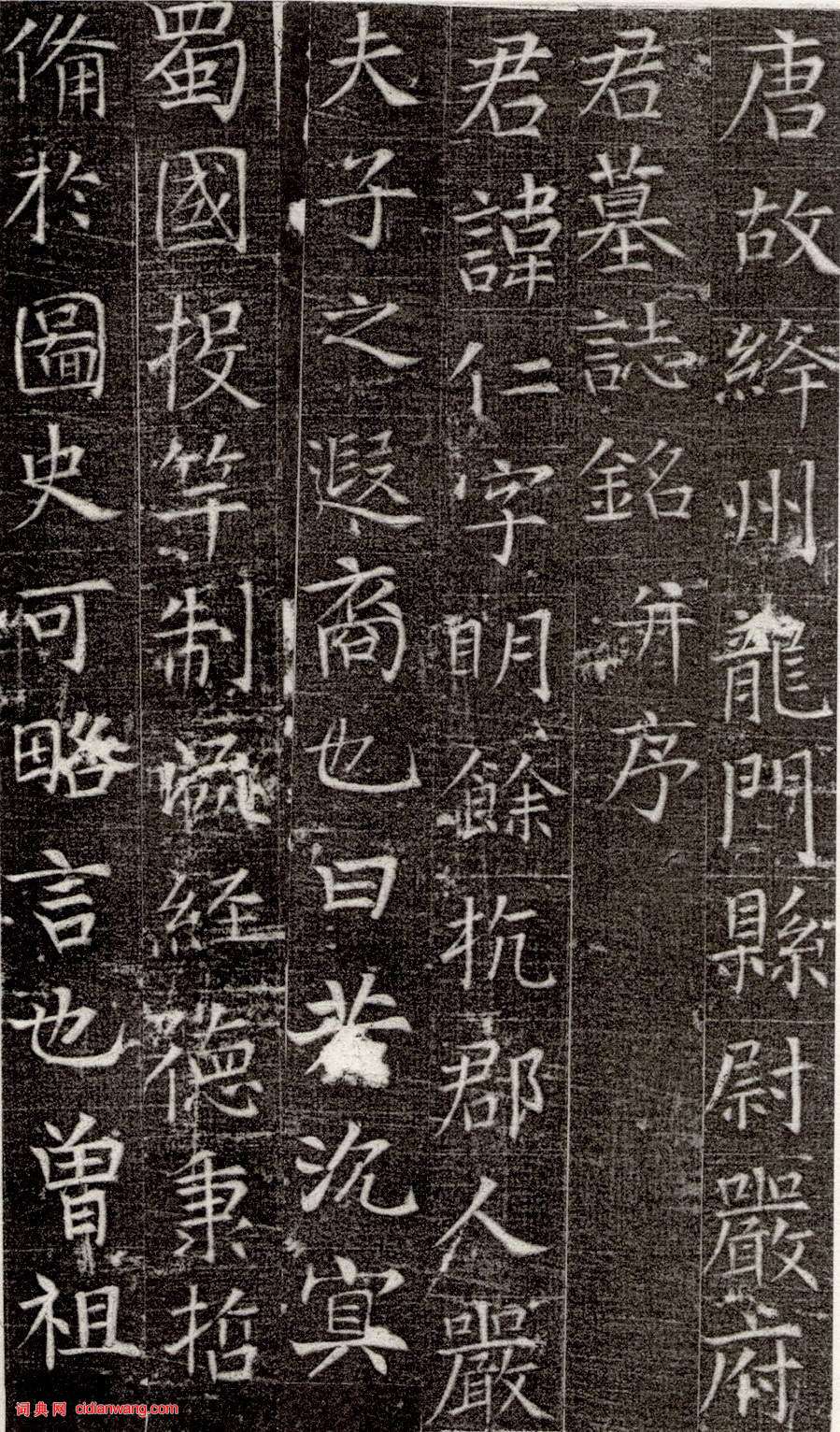 此碑於1992年元月發現於河南省洛陽市邙山腳下偃師縣磷肥廠擴建改造工地發掘的一處唐墓。墓誌青石質,有蓋,近方形,右上角已殘缺。橫55,縱53厘米。志文楷書,共21行,滿行21字,總計430字。