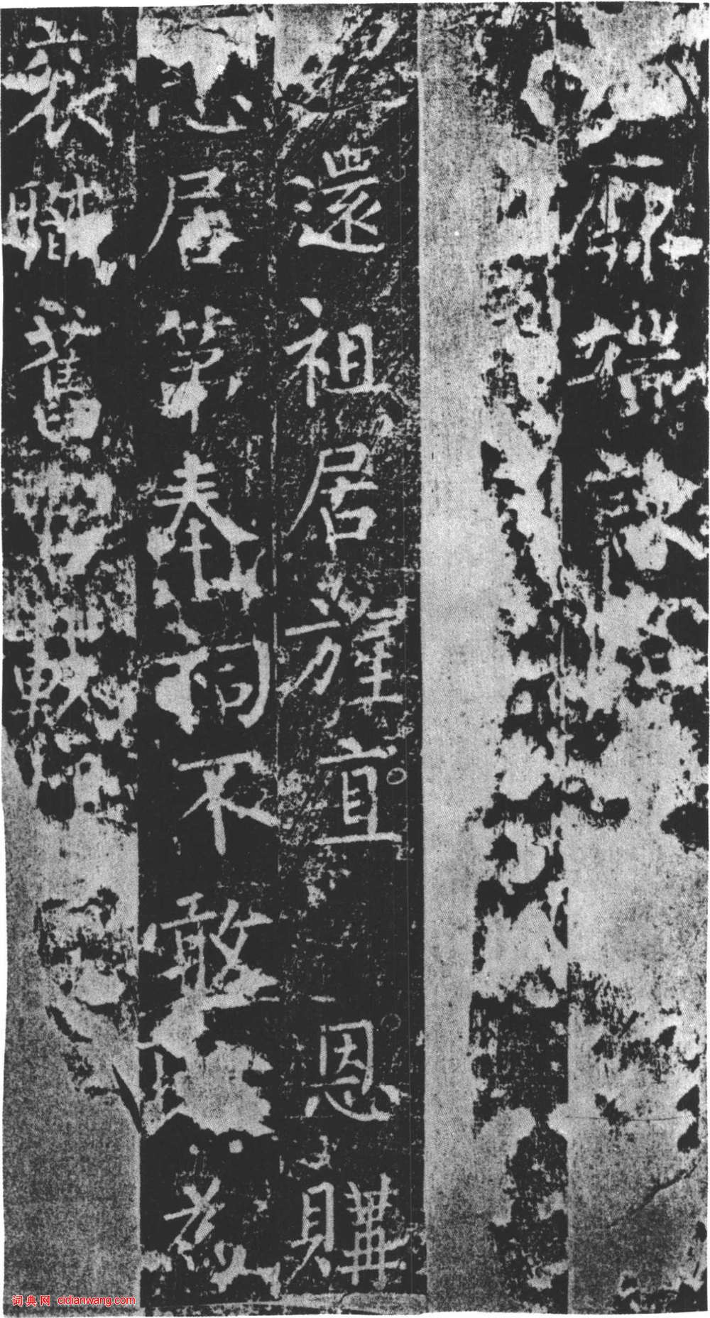 終始一德,命求昆裔,期肖前人,以(闕二十七字格)可朝聞夕拜疏視□□之病猶在□□言之□□□上書草充溢囊篋,使好事者得之皆(闕十九字格)文宗益欲冥於側,即以為右使入侍未嘗□使之故。會昌中權幸惡忌,擠之外郡,閒(闕四十七字格)征兼領邦憲,閒歲進陟公台,仍專(闕二十字格)索將勇□整易干城之不材者蚤□□□征繕是圖□□□府大體之舊宅永興裏,肈卜貞觀。材以成之厥後綿厯祀葉為他人有元□□興。□□猗猗後為右補闕,至公恭守儉(闕十九字格)中,被袞朝天,又葺故廟,奉時(闕五字格)之維忠與孝可謂大備(闕四字格)銘石於麗牲,其𤇏夷之志歟(闕數字格)。(闕四字格)孔昭厥緒益遙人爵或(闕十九字格)替□□爰操肇□皇□廓端諫路(闕十八字格)魏還祖居旌直恩購(闕十九字格)居第奉祠不敢□為袞職舊官載(闕十九字格)聞躬潔祼羞俎折(闕十九字格)綏嘏錫(闕五字格)考私維□報(闕十三字格)。
