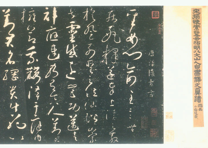 “綠天庵(即懷素)《自序》、《千文》等帖醉書。一本於張有道之玄;唯《聖母帖》醒書,得索幼安與張有道之整。因想見漢二家書法,皆生長酒泉州郡,一去而為屬國,綠天庵書,那得不珍重之?戊寅小春。八大山人題於在芙山房。”