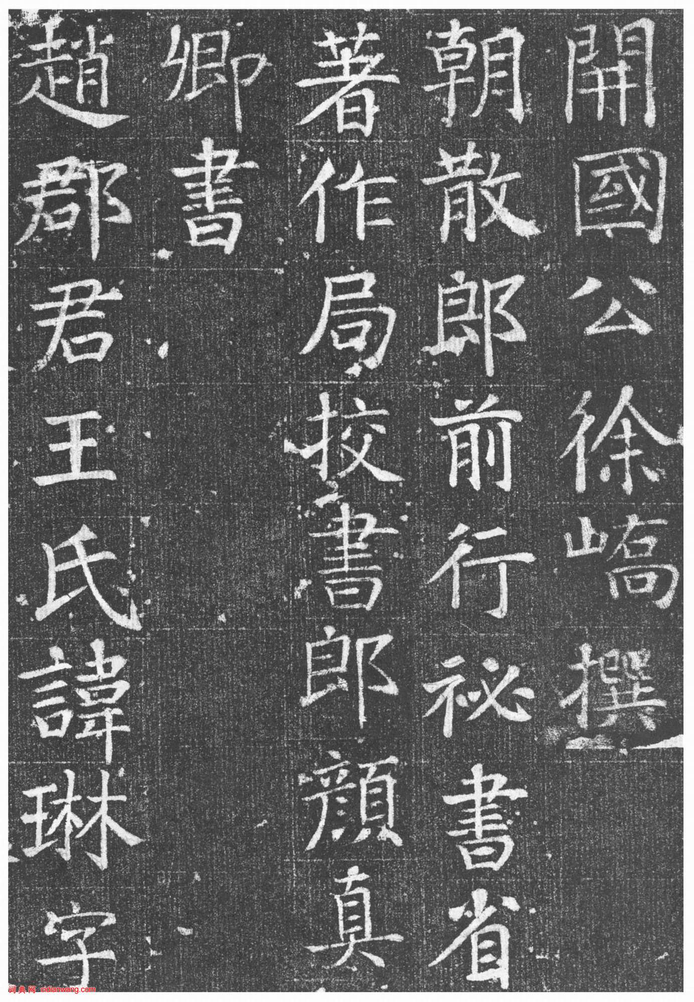 趙郡君王氏,諱琳,字寶真,族望太原,胤承仙胄�璧,濟美弈業其休。六代祖廣昌郡公士良,周小司徒、吏部尚書、隋并州刺史。五代祖德衡,隋儀同大將軍。並周隋,史有傳。高祖武英,隋棗陽公、皇朝左衛大將軍,尚鹹寧縣主。曾祖神感,判涼府節度、西州長史。祖仁肅,尚秉直長,並偉才湛識,彪武炳文,貴戚增榮,戎麾總寄清仕,令望克傳家聲。烈考獻,襲棗陽公,糠�名,實優遊,琴酒抱素,高尚八十而終。夫人弘農楊氏生一子一女,子聽思未仕而卒,女即趙郡君焉。於昭淑儀,實著令范。吾見其懿,可略而言爾。其生韞惠和,性克柔婉,孝慈穆於中,外禮樂備乎周鏇。絲�組�彩就雕縷,凡曰女工之妙,自然造微。載惟女史之規寧,俟師姆、我先太夫人重笄棗之行,難齊姜之選,允擇四德,遍於六姻。謂求宜家,俾正婦道,年甫十八禮歸吾門。事舅姑,奉�藻,節環佩之響,整山河之容,溫如�如,有典有麗。余自弱冠登於宦途,克儉克勤,靡私靡費,嘗無囊篋之蓄,固存俸祿之餘。初不愆甘脆之資,終能廣散惠之義,由是中外戚屬欽裕慕仁,若眾鳥之赴春林,族雲之歸晴阜矣。開元中,及丁二門艱,罰其居喪之節,動必加人號,毀之深,氣積成痼。余既出鎮,隨泛江皋,允遵輔佐之宜。不憚東南之厲,居諸卑濕,歲月沉沉,異蠲無妄,將葉勿藥。天乎可問,曷禍我賢,以今辛巳之年秋七月二旬有八日薨於潤州之正寢。嗚呼哀哉!載惟平昔禪寂為行,暨屬纊之際真性轉明,泯苦空,絕恩愛,慧心普至,揮手謝時猶托以祀,絕葷血斂唯縵素。卜宅龍門之上,幽憑淨境之緣,敢懷雅言,寧忍奪志,危旌旅櫬�江。而回男行女隨哀哀不絕,萬里孤帆爰屆洛都,即以其年十一月二日安厝於龍門西崗清河王嶺,從遺語也。前瞻伊闕,傍對伊川,寶塔靈龕盡為極樂之界,鯨鍾魚梵常送大悲之聲,即是楞伽之峰,自然解脫之岸,豈比夫北邙之壟,西陵之原。白楊蕭蕭,夜雜鬼哭;蒼煙漠漠,晝掩魂游者乎!子�、雲、暈,女茗、菲、萼、蘭,天生之孝,孺慕之哀舉聲殞絕,感慟行路。嶠一和琴瑟,垂四十年中饋正言作程作則。婦禮可以久敬,母儀可以訓時,奈何雙飛忽傷孤翼。撫存追往,弔影何言?不堪長簟之悲,聊發鼓盆之響。雪涕揮翰敢志鴻妻,其銘曰: