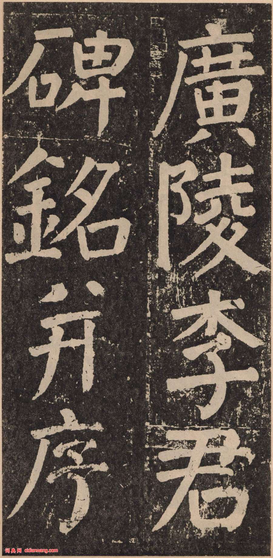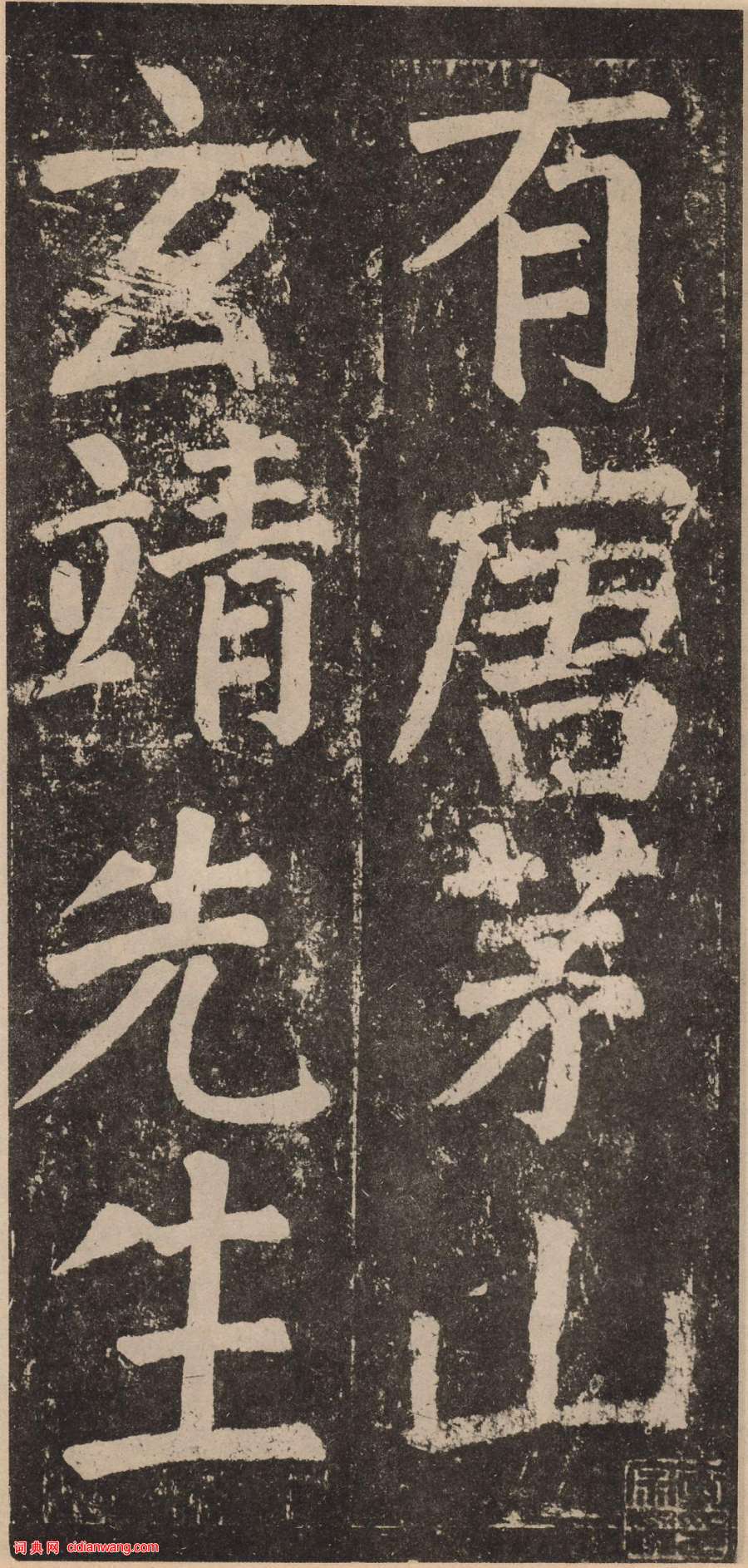 《李玄靖碑》,全稱為《有唐茅山玄靖先生廣陵李君碑銘並序》。碑原立在江蘇句容縣茅山玉晨觀。據《金石萃編》載:“碑已斷裂,約高一丈余,廣三尺二寸五分,厚一尺四分。四面刻,前後各十九行,兩側各四行,行皆三十九字,正書。”古代刻碑的通例是先用朱筆把碑文寫在右面上,稱為“書丹”或“用丹”,然後刻工依字跡刊刻,一般碑額為標題,碑陽(正面)為正文,碑陰(背面)碑側(左右)為題名。可能是碑文太長,也可能是表示碑主的事跡多得說不完而有意刻滿碑的四面,因而稱為四面碑。