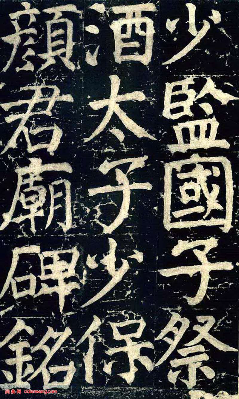《顏氏家廟碑》全稱《唐故通議大夫行薛王友柱國贈秘書少監國子祭酒太子少保顏君碑銘》 ,系顏真卿為其父顏惟貞刊立。建中元年(780年)六月撰文,十月又撰書《碑後記》 ,時年72歲。當時正是顏真卿躊躇滿志之時,書法風棱秀出、精彩紛呈,為顏真卿 晚年書法藝術的代表作,與李陽冰篆額,世稱“雙璧”。此碑首行下刻有宋太平興 國七年(982年)八月二十九日重立時李準跋文。據跋文記,此碑經唐室離亂, 倒臥 於郊野塵土之中,至北宋太平興國七年李延襲發現後,才移入府城孔廟內。據《校 碑隨筆》等書記載,碑文第三行“祠堂”之“祠”字鉤筆,惟宋拓本完好,明時已 鑿粗。如“李陽冰篆額”之“陽”字第三撇未損,“冰”字完好,“額”字右“頁” 直筆未損,則是宋拓“祠”字完好本中的上品。此碑至今雖然完好,然由於歷來傳 拓過多,字口漸變,風神已差。