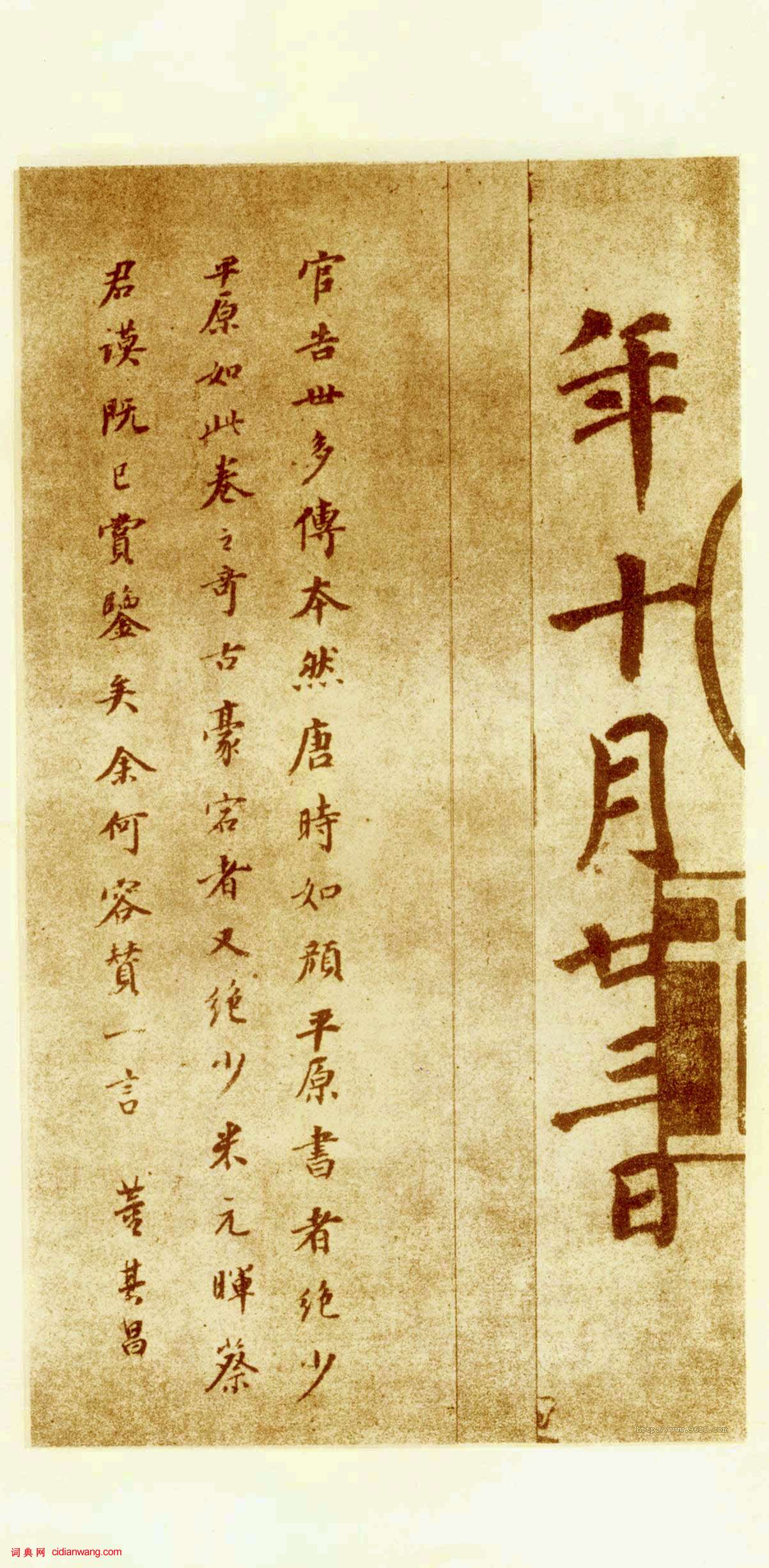 書法欣賞魏晉書法唐朝書法宋朝書法元朝書法明朝書法清朝書法近現代書法字典網>> 歷代書法>> 隋唐>> 顏真卿楷書《自書告身帖》(9)正文 顏真卿楷書《自書告身帖》(9)作者:顏真卿 書體:楷書 首 頁 上一頁 1 2 3 4 5 6 7 8 9 顏真卿的相關書法作品:顏真卿楷書《朱巨川告身》 顏真卿行書《祭伯父文稿》 顏真卿雅集《竹山堂連句》 顏真卿《祭侄稿》 顏真卿行草《劉中使帖》 顏真卿楷書《東方朔畫贊碑》 顏真卿楷書《郭虛已墓誌》 顏真卿楷書《顏勤禮碑》 顏真卿楷書《唐王琳墓誌》 相關文章:高閒《草書千字文》 (草書)《草書千字文》殘卷,真跡。紙本,縱30.8厘米,橫331.1厘米,已殘,僅存“葬...張雨小楷《跋吳叡篆書千字文》 (小楷)張雨《跋吳叡篆書千字文》 上海博物館藏 【釋文】:嘗閱趙文敏公四體書千文,其小篆...趙孟頫行書《違遠帖》 (行書)趙孟頫《違遠帖》 紙本,縱29.7cm 橫29.7cm 北京故宮博物院藏此帖中的...王羲之草書《旃罽胡桃帖》 (草書)王羲之《旃罽胡桃帖》 敦煌石室臨本, 紙本。縱25.2厘米,橫20.6厘米。5行...文徵明《行草口號十首卷》 (行草)明代文徵明書法作品欣賞《行草口號十首卷》紙本,高28.5厘米,縱310.6厘米,...倪瓚小楷《題周文英詩志傳》 (小楷)倪瓚小楷《題周文英詩志傳》 1372年 縱25.9厘米 橫26.2厘米 遼寧省博...蘇軾行書《滿庭芳詞》 (行書)宋代蘇軾行書《滿庭芳詞》紙本,詞一首。凡10行,計96字。蘇東坡書於宋神宗元豐六...陳繼儒《行書風中柳詞軸》 (行書)陳繼儒《行書風中柳詞軸》紙本行書 120×39cm 山東省博物館藏釋文:燕燕於...黃庭堅行書《經伏波神祠》 (行書)《經伏波神祠》行書 紙本 33.6 × 82.6cm,凡16行,166字。黃庭...趙孟頫·跋王羲之《大道帖卷》 (行書)趙孟頫跋王羲之《大道帖卷》,台北國立故宮博物院藏。釋文:梁武評書至右軍謂龍跳天門...