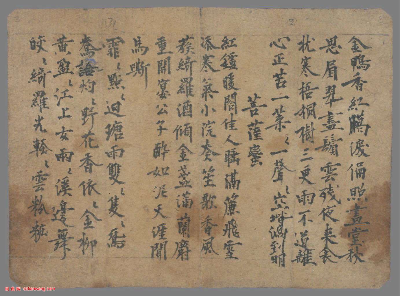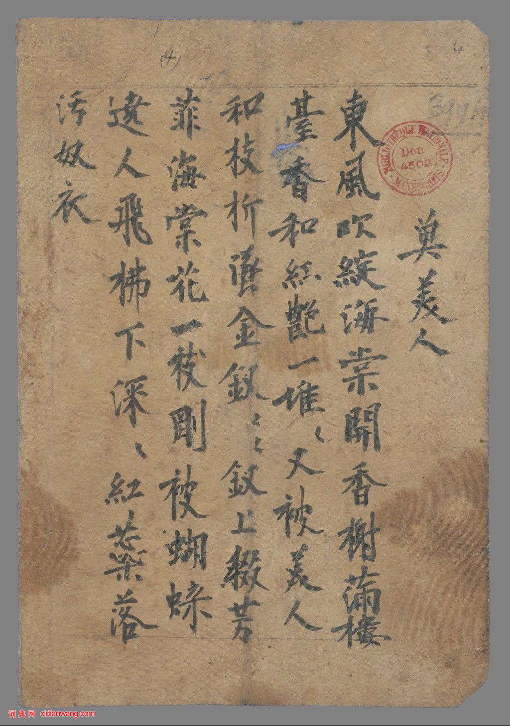 書法欣賞魏晉書法唐朝書法宋朝書法元朝書法明朝書法清朝書法近現代書法字典網>> 歷代書法>> 隋唐>> 《敦煌曲子》殘稿(2)正文 《敦煌曲子》殘稿(2)作者:不詳 書體:楷書 首 頁 上一頁 1 2 相關文章:李斯篆書《會稽刻石》 (篆書)【釋文】:皇帝休烈,平一宇內,德惠攸長。卅有七年,親巡天下,周覽遠方。遂登會稽,...宋克《唐張懷瓘論用筆十法》 (行書)宋克《唐張懷瓘論用筆十法》,紙本,縱46.7厘米,橫37.7厘米。北京文物局藏。...林則徐臨蘇軾《寒食帖》 (行書)林則徐臨蘇軾《寒食帖》,紙本,四條屏,尺幅“121×27厘米×4 。 此件林...褚遂良《雁塔聖教序集字唐詩》褚遂良字登善,杭州錢塘人,生於隋文帝開皇十六年(公元五九六年),卒於唐高宗顯慶三...傅山《行草書杜甫七絕一首》 (行草)傅山《行草書杜甫七絕一首》絹本行草 178.5×45.5cm 北京故宮博物院藏...蘇洵《陳元實夜來帖》 (草書)蘇洵《陳元實夜來帖》,約1047(慶曆七年),紙本,34.5×50.9cm。台...王寵草書《送友生游茅山詩》 (草書)王寵《送友生游茅山詩》冊 紙本,草書。28.8×25.4厘米此冊《送友生游茅山...米芾墨跡十三帖 故宮珍藏! (行書)1、米芾《陳攬帖》(昨日帖)紙本 行書 縱25.9厘米 橫20.8厘米台北故宮博...王羲之草書《初月帖》 (草書)《初月帖》,紙本,遼寧省博物館藏。此帖為《唐摹萬歲通天帖》之二。王羲之父名“正”...鄧石如《四體書冊》之《怪石長松篆書冊》 (篆書)鄧石如《四體書冊》之《怪石長松篆書冊》(局部) 嘉慶二年(1797)日本東京...