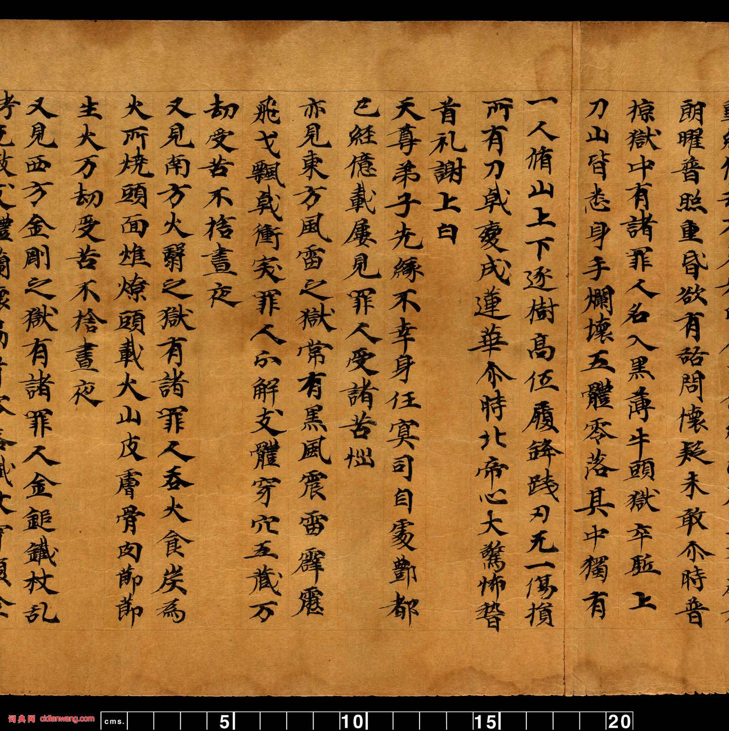 書法欣賞魏晉書法唐朝書法宋朝書法元朝書法明朝書法清朝書法近現代書法字典網>> 歷代書法>> 隋唐>> 道教經典《太上九真妙戒金籙度命九幽拔罪妙經》(2)正文 道教經典《太上九真妙戒金籙度命九幽拔罪妙經》(2)作者:不詳 書體:楷書 首 頁 上一頁 1 2 3 下一頁 尾 頁相關文章:李祁·書札 (行書)【釋文】此宣公居江淮督府書也。公方弱冠。已有經綸天下之志。觀於此書可見矣。宋之中...申時行行草《七律詩扇》 (行草)申時行《行草七律詩扇》 19.4×55cm 蘇州博物館藏釋文: 兩涯秋水臥長虹...吳熙載篆書《張華勵志詩四屏》軸 (篆書)吳熙載《張華勵志詩四屏》軸 紙本,118.2×37.5cm×4 日本東京國...王獻之行書間架結構九十二法 (行書)行書是中國書法中實用性和藝術性統一和最為完美的一種書體。古人云:楷如立,行如趨,...歷代篆刻印章的種類及形式從古至今,印章的種類及形式究竟有多少呢,一起看看吧。一、戰國古璽古璽是先秦印章的...趙佶楷書《題錢文》 (楷書)徽宗趙佶題“大觀通寶”錢文 北宋貨幣大觀通寶,是由徽宗御題錢文。宋代與歷朝有所不...歐陽通《道因法師碑》 (楷書)《道因法師碑》全名為《大唐故翻經在德益州多寶寺道因法師碑》,唐龍朔三年(663)...沈曾植《行書田園樂詩軸》 (行書)沈曾植《行書田園樂詩軸》紙本行書 88.3×42cm 嘉興博物館藏 釋文:採桑...陸啟成楷書《般若波羅蜜多心經》冊頁 (楷書)陸啟成楷書《般若波羅蜜多心經》冊頁,19頁。陸啟成師從著名書法家蕭勞、李鐸、盧中...褚遂良小楷《文皇哀冊》 (小楷)《文皇哀冊》在傳世的小楷作品中,久負盛名。相傳為真跡,但文稿後並無書人落款。據古...