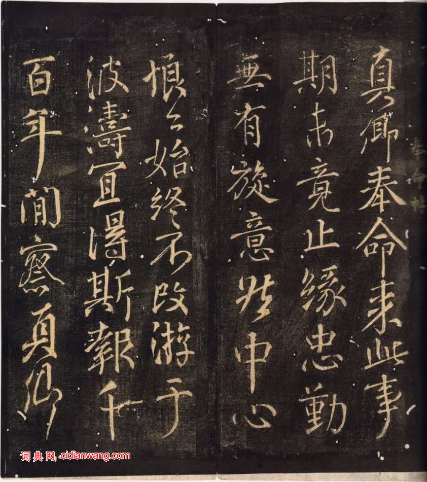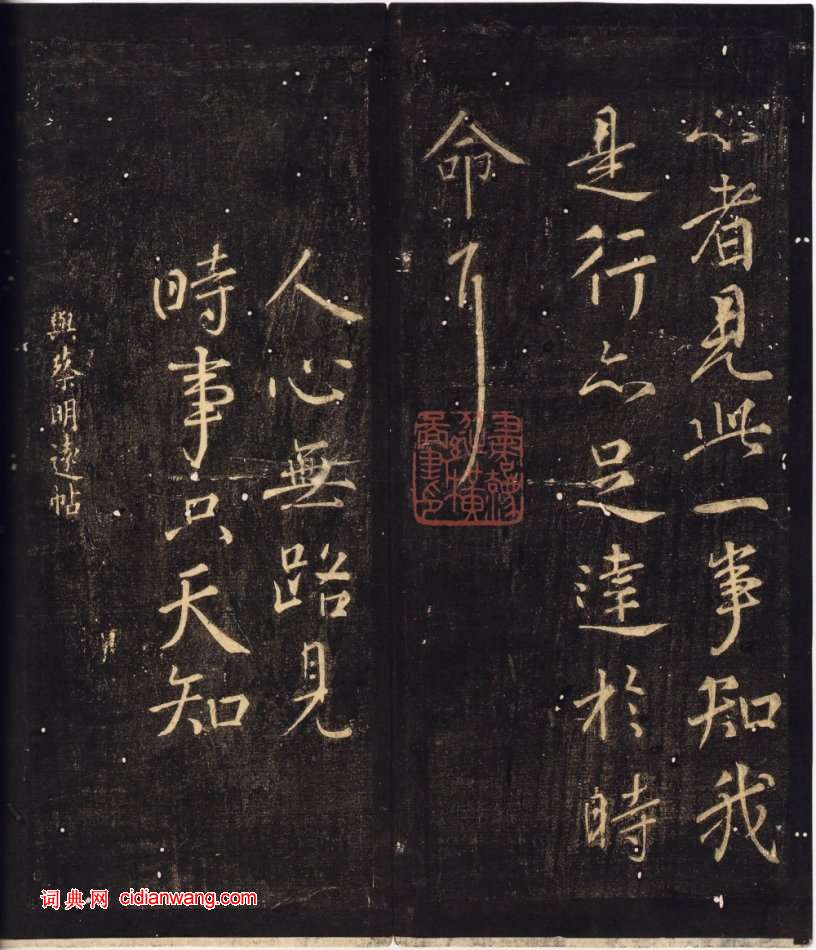 宋拓顏真卿《奉命帖》,南宋留元剛《忠義堂帖》本。書於建中四年(783年),35.6×16.5cm 行書,刻帖,信札。凡11行,計69字,浙江省博物館藏。