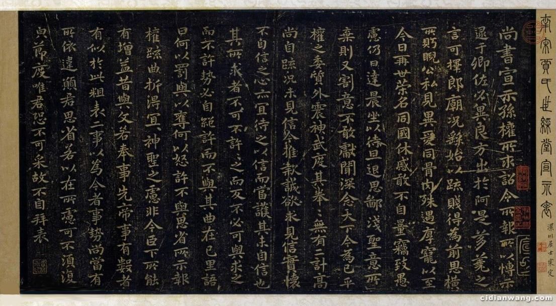 《宣示表》故宮博物院藏,梁武帝蕭衍譽道“勢巧形密,勝於自運”。筆法質樸渾厚,雍容自然。王導東渡時將此表縫入衣帶攜走,後來傳給逸少,逸少又將之傳給王修,王修便帶著它入土為安,從此不見天日。