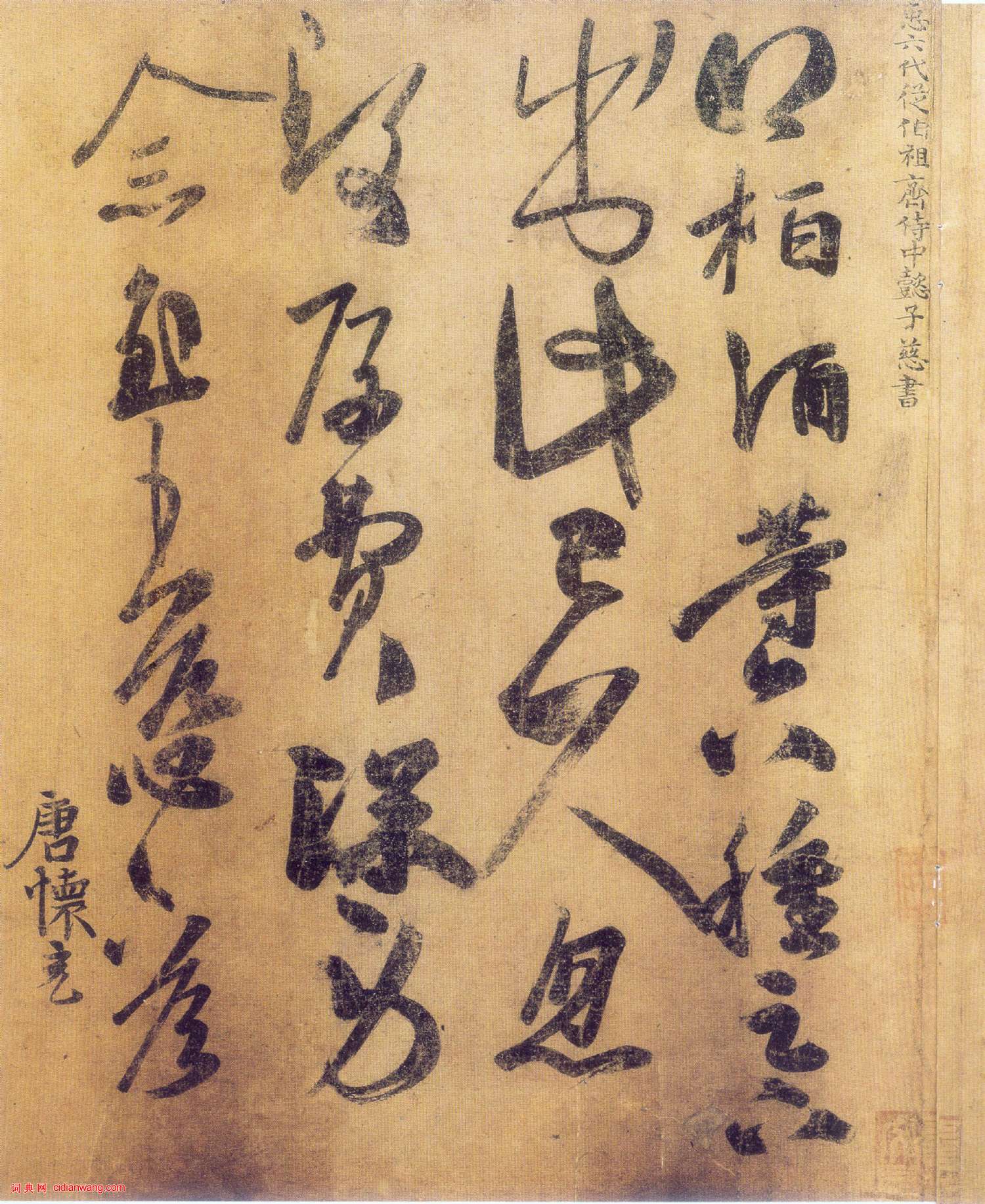 書法欣賞魏晉書法唐朝書法宋朝書法元朝書法明朝書法清朝書法近現代書法字典網>> 歷代書法>> 魏晉>> 王慈草書《栢酒帖》正文 王慈草書《栢酒帖》作者:王慈 書體:草書 王慈草書《栢酒帖》, 於遼寧省博物院藏的《唐摹萬歲通天帖》釋文: 唐懷充,臣六代從伯祖齊侍中懿子慈書得栢酒等六種,足下出此已久,忽致厚費,深勞念慰。王慈具答。唐懷充,范武騎。王慈的相關書法作品:王慈草書《栢酒帖》 王慈草書《汝比帖》 相關文章:文徵明《前赤壁賦》 (小楷)文徵明小楷《前赤壁賦》。嘉靖九年,六十一歲的文徵明時書,縱二十四點九厘米,藏於故...倪元璐草書《“章華宮人夜上樓”七言詩軸》 (草書)倪元璐《“章華宮人夜上樓”七言詩軸》 紙本行草書,134×50.8cm。日本東...朱熹行書《城南唱和詩卷》 (行書)朱熹《城南唱和詩卷》 紙本,手卷 31.5×275.5厘米。北京故宮博物院藏朱...黃庭堅行書《致天民知命大主薄書》 (行書)黃庭堅《致天民知命大主薄書》紙本行書。25.5×45.9cm 台北故宮博物院藏...沈尹默行書《蘇東坡詩冊》 (行書)沈尹默行書作品欣賞《蘇東坡詩冊》,沈尹默68歲書贈李天馬書法冊頁一套16P。陳鴻壽·隸書六言聯 (隸書)結德言而為佩,援雅範以自綏。北魏楷書《司馬顯姿墓誌》 (楷書)全稱《魏故世宗宣武皇帝第一貴嬪夫人司馬氏墓志銘》。高67.1厘米,寬67.3厘米...文徵明行書《心經》 (行書)《心經》,全稱為《般若波羅蜜多心經》,是漢傳佛經中最短的一部,因其旨意精微且便於...王羲之《筆勢論十二章》釋文告汝子敬:吾察汝書性過人,仍未閒規矩。父不親教,自古有之。今述《筆勢論》一篇,一...趙之琛隸書《萬事一生六言聯》 (隸書)趙之琛《隸書“萬事一生”六言聯》紙本隸書 117.9×18.3cm×2 上海...