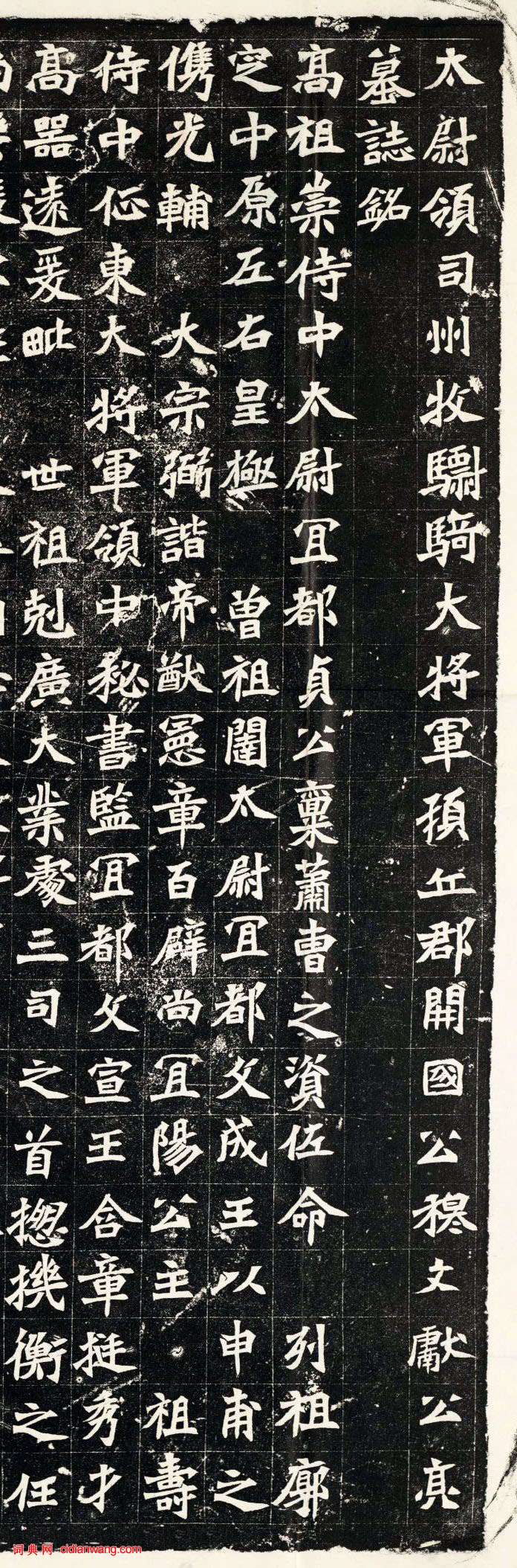 太尉領司州牧驃騎大將軍頓丘郡開國公穆文獻公亮墓志銘"高祖崇,侍中太尉宜都貞公.稟蕭曹之資,佐命列祖,廓"定中原,左右皇極.曾祖闥,太尉 宜都文成王.以申甫之"俊,光輔太宗,弼諧帝猷,憲章百辟.尚宜陽公主.祖壽,"侍中征東大將軍領中秘書監宜都文宣王.含章挺秀,才"高器遠,爰毗世祖,克廣大業,處三司之首,總機衡之任."尚樂陵公主.父平國,征東大將軍領中書監駙馬都尉."位班三司,式協時雍.尚城陽長樂二公主.四葉重暉,三台"疊映,餘慶流演,實挺明懿.公弱冠登朝,爰暨知命,內贊百"揆,外撫方服,宣道揚化卅余載.以景明三年歲在壬午夏"閏四月晦寢疾薨於第.天子震悼,群公哀動,賵禭之禮,有"加恆典.乃刊石立銘,載播徽烈.其辭曰:"雲岩升彩,天淵降靈,履順開祉,命世篤生.纂戎令緒,遹駿"茂聲,朝累台鉉,家積忠英.神清氣邈,志和慮正,體仁為心,"秉義為性.敦詩悅禮,恩恭能敬,內殖德本,外延袞命."暉金溢竹,組紱斯繁,四登三事,五總納言.一傳儲宮,再統"征軒,風芳冀東,澤流陝西.余祉愆順,靈道匪仁,國喪茂台,"家徂慈親.瑤摧荊嶺,玉碎琨津,敬銘幽石,式揚芳塵. "維大魏景明三年歲次壬午六月丁亥朔廿九日乙卯。