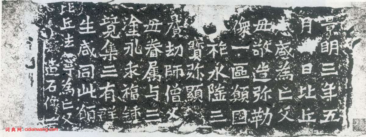 造像記正書,14行,一行5字。可見六十六字,書法沉勁方重,猶存隸意。景明三(502)年五月刻。