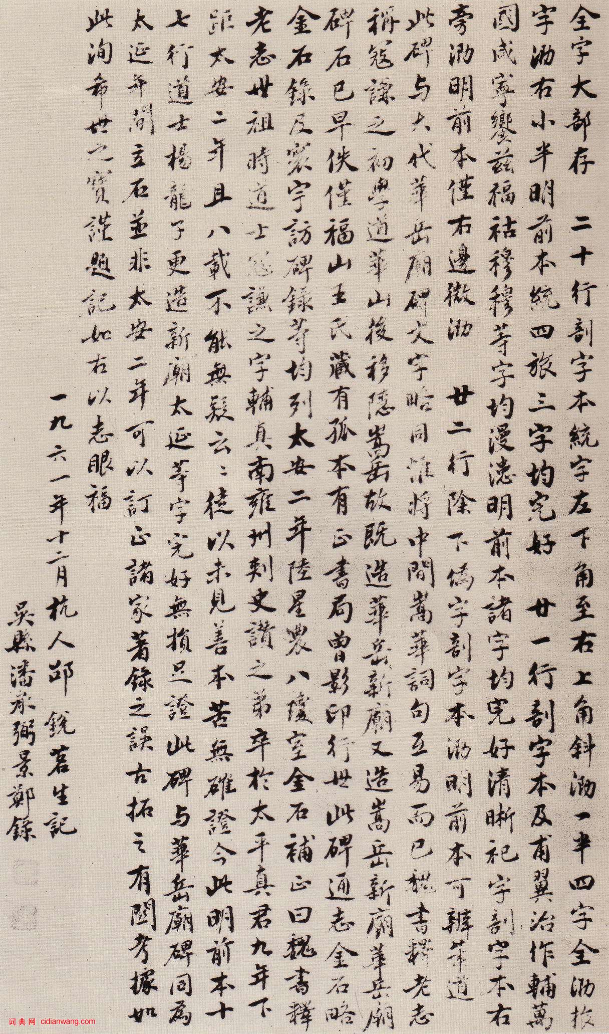 資源下載魏晉書法唐朝書法宋朝書法元朝書法明朝書法清朝書法近現代書法字典網>> 歷代書法>> 魏晉>> 龍門二十品《中嶽嵩高靈廟碑》(22)正文 龍門二十品《中嶽嵩高靈廟碑》(22)作者:不詳 書體:楷書 首 頁 上一頁 13 14 15 16 17 18 19 20 21 22相關文章:沈曾植《行書蘇軾跋蔡帖扇》 (行書)沈曾植《行書蘇軾跋蔡帖扇》紙本行書 18×52cm 平湖市博物館藏 釋文:東坡...來楚生行書《錄黃庭堅句七言聯》 (行書)來楚生《錄黃庭堅句七言聯》紙本(汁綠虎皮宣)行書 103×18.5cm×2 ...王鐸書法的三重境界題圖人物非王鐸 張大千《松下撫琴圖》悲 情 王 鐸三百年多前,從洪武門降清的那...董其昌《蜀素帖後跋》 (行書)《蜀素帖》,為北宋書法家米芾的墨寶。寫於哲宗元祐三年(1088年),以行書寫成。...傅山《草書五言詩》 (草書)傅山《草書五言詩》軸 綾本 171×48.5cm 來自中貿聖佳國際拍賣有限公司...李東陽·跋懷素《自敘帖》 (行書)李東陽跋懷素《自敘帖》,行書,藏台灣故宮博物院。懷素《自敘帖》內容為自述寫草書的...虞世南《汝南公主墓誌》 (行草)《汝南公主墓誌》此帖無款,傳為虞世南書,亦有人認為是舊摹本。貞觀十年(636)十...唐楷書《等慈寺碑》 (楷書)全稱《大唐皇帝等慈寺之碑》。唐顏師古撰。無書人姓名。無立碑年月。宋趙明誠《金石錄...沈荃行書《唐武元衡春興七絕詩軸》 (行書)沈荃《行書唐武元衡春興七絕詩軸》紙本行書 108×53cm 上海朵雲軒藏 釋文...鮮于樞·跋顏真卿祭侄文稿 (楷書)【釋文】唐太師魯公顏真卿書祭姪季明文稿,天下行書第二。余家法書第一。至元壬午春,...