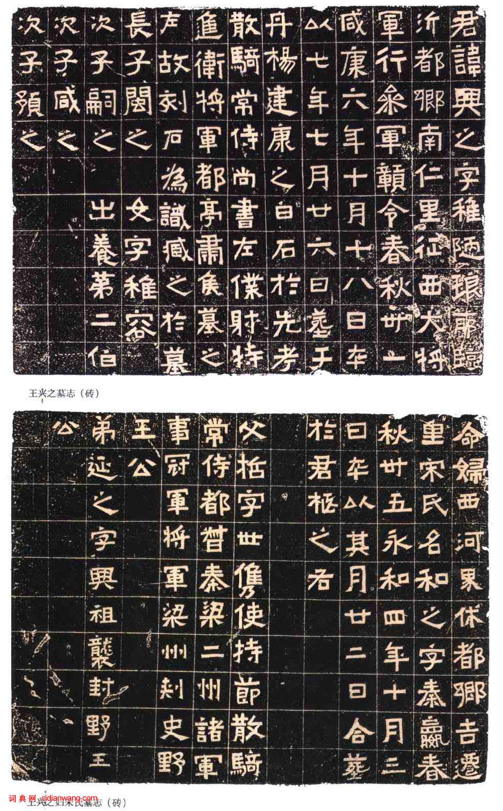 《王興之夫婦墓誌》 東晉永和四年(348)十月刻