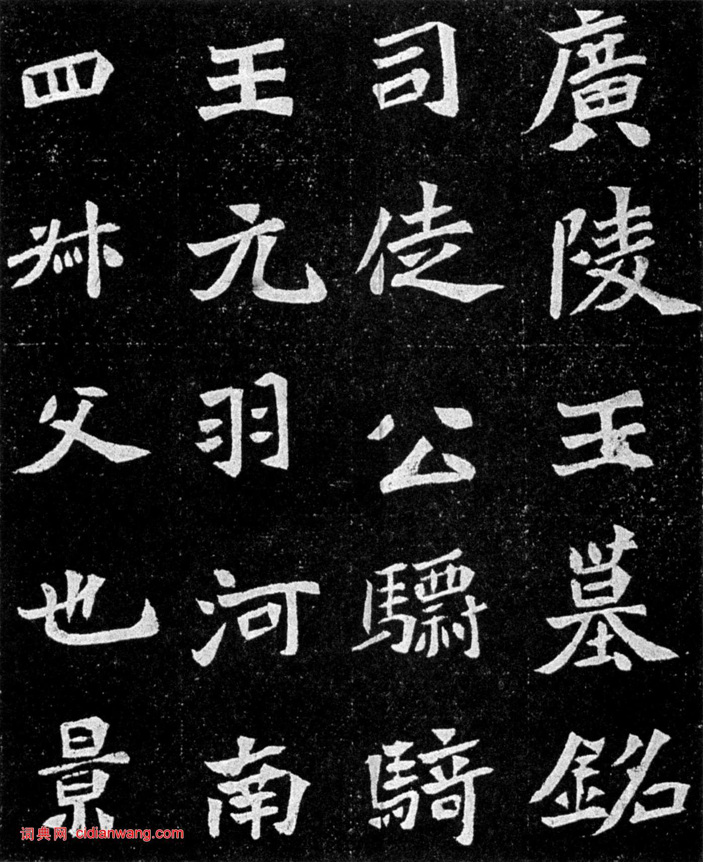 侍中司徒公廣陵王墓銘志 使持節侍中司徒公驃騎大將軍冀州刺史廣陵惠王元羽,河南人,皇帝之第四叔父也。景明二年歲在辛巳,春秋卅二,五月十八日薨於第。以其年七月廿九日遷窆於長陵之東崗。龍游清漢,鳳起丹嶺,分華紫萼,底流」天景。當春競彩,陵秋擢穎,輟袞東嶽,揚鉉司鼎。接海恩深,寰嵩愛廣,敷惠偃風,援聲革響。棠陰留美,梁乾攸仗,二穆層光,三獻襲朗。協贊伊人,如何弗遺,煙峰碎嶺,雲翔墜飛。松闉沉炤,泉堂閟暉,敬勒幽銘,庶述淒而。