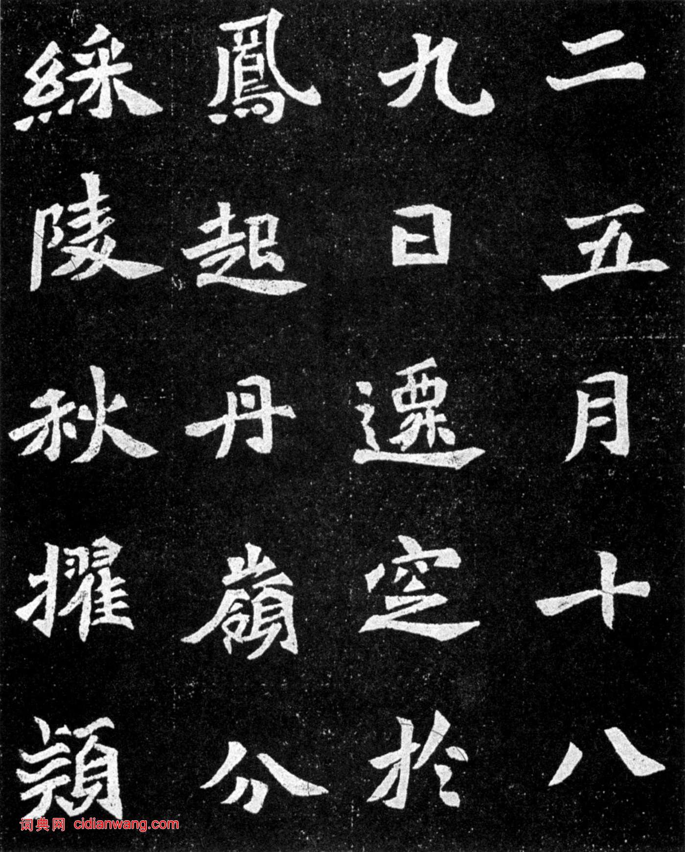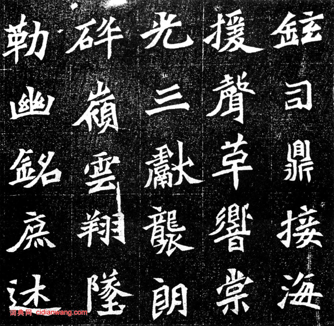 北魏墓誌面目之豐富,類似周代金文之璀璨,漢代碑刻之輝煌,體態多變,風韻各具,不勝枚舉。《元羽墓誌》刻工極精細,嚴謹中有奔放,少有北朝粗獷之風,多見文雅之態。“司”字“”部粗壯有力,筆畫方折峻厲,但刀斫斧削的生硬感沒有了,氣勢鼓盪充沛,觀之讓人精神為之一振。“中、元”為獨體字,參用圓筆,豎畫為懸針形,飽滿有力。“第”字撇畫收縮,字形收縮,方正內斂。“穆”字三撇畫有刻工作用,顯現出一定的趣味,不妨借鑑。從“將、岳、袞、紫”能看出點畫的妙用。相同的筆畫和部首多見變化,自然隨意,如“羽、竟”等字。左右結構字形不避讓,如“綵、龍”,“史、使、陵”等字撇捺畫極力放出,顯得很寬博。結體少見縱長,偶有為之,如“鼎”字,多以扁方為主,寬密並用、平中見奇。“廣”字末筆點行筆內收,為不多見者。墓誌沒有絕對的規矩,略見差異,遂成一家風貌。