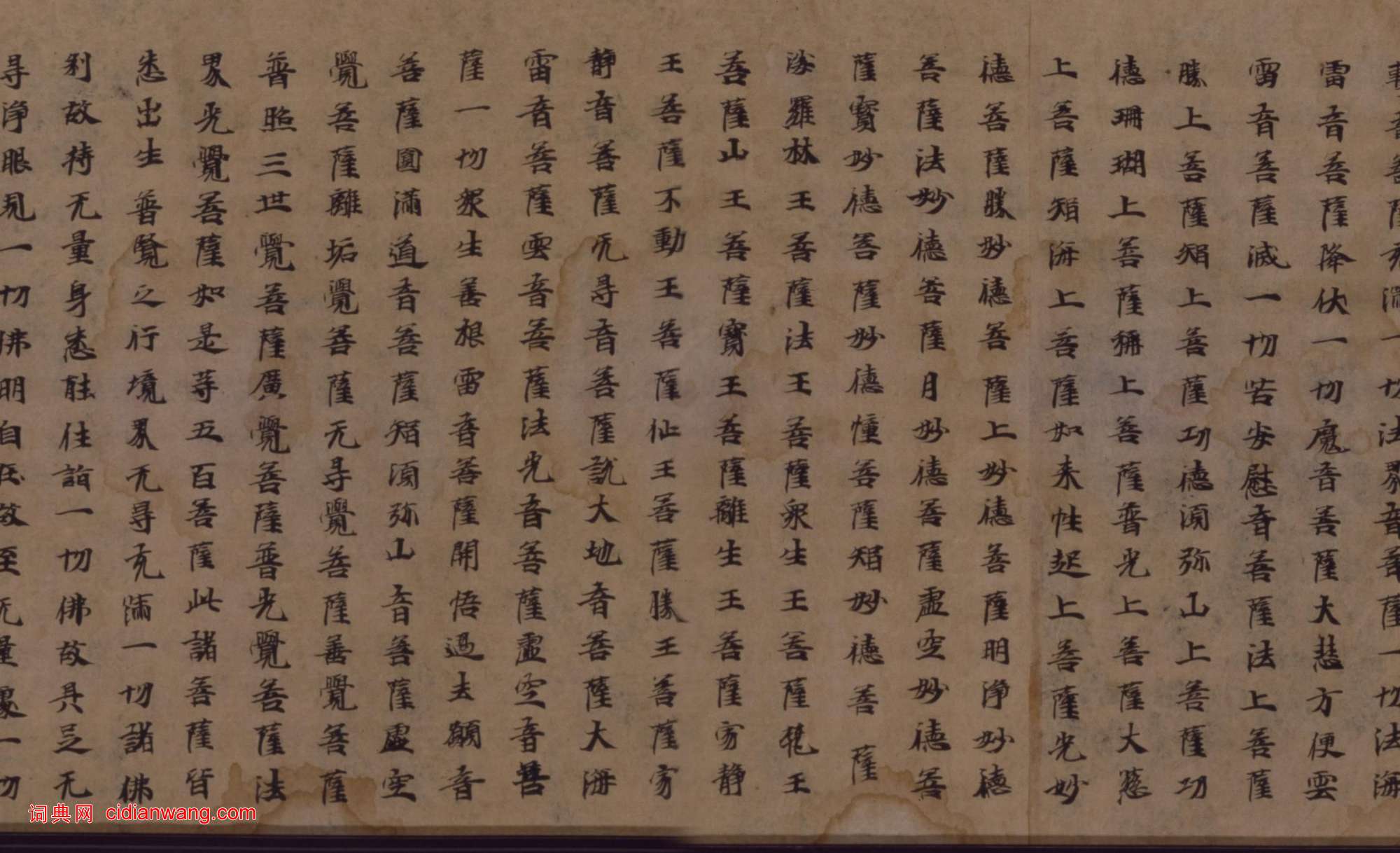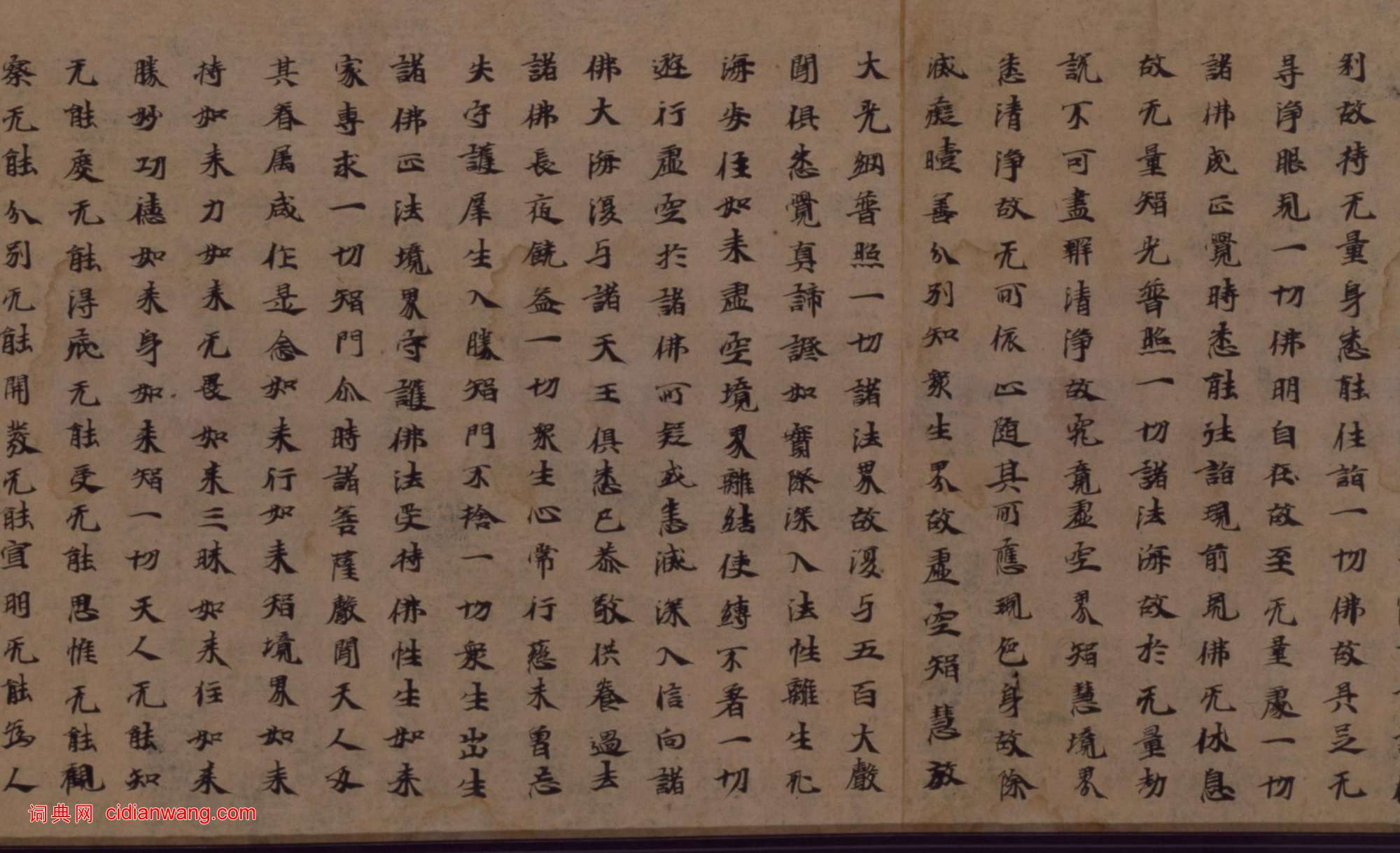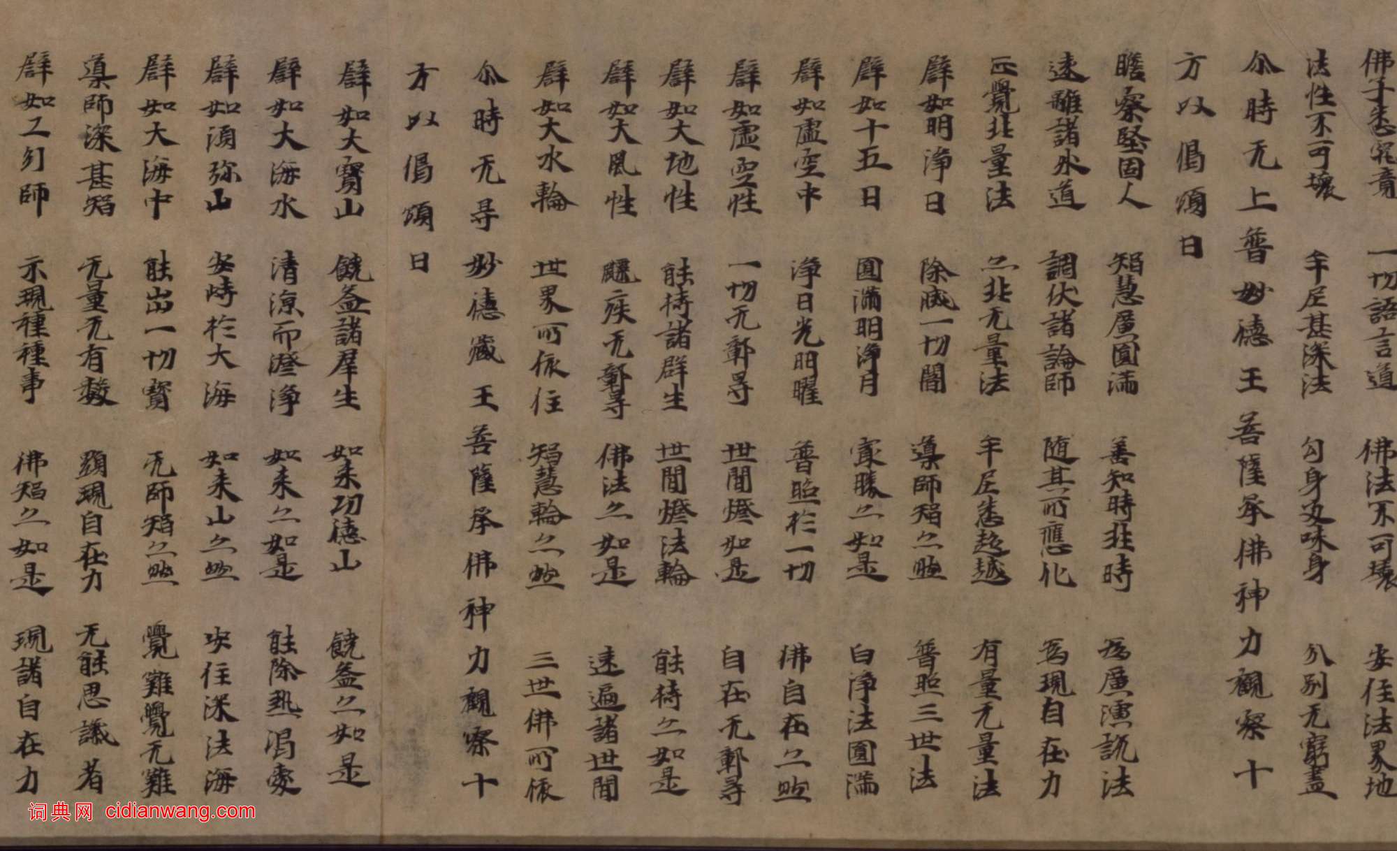《大方廣佛華嚴經》簡稱《華嚴經》,是佛教的重要經典。古有三種譯本。據考證,此卷所寫為東晉佛陀跋陀羅所譯六十卷本,稱“六十《華嚴》”,共含三十四品。(撰稿人:金運昌)