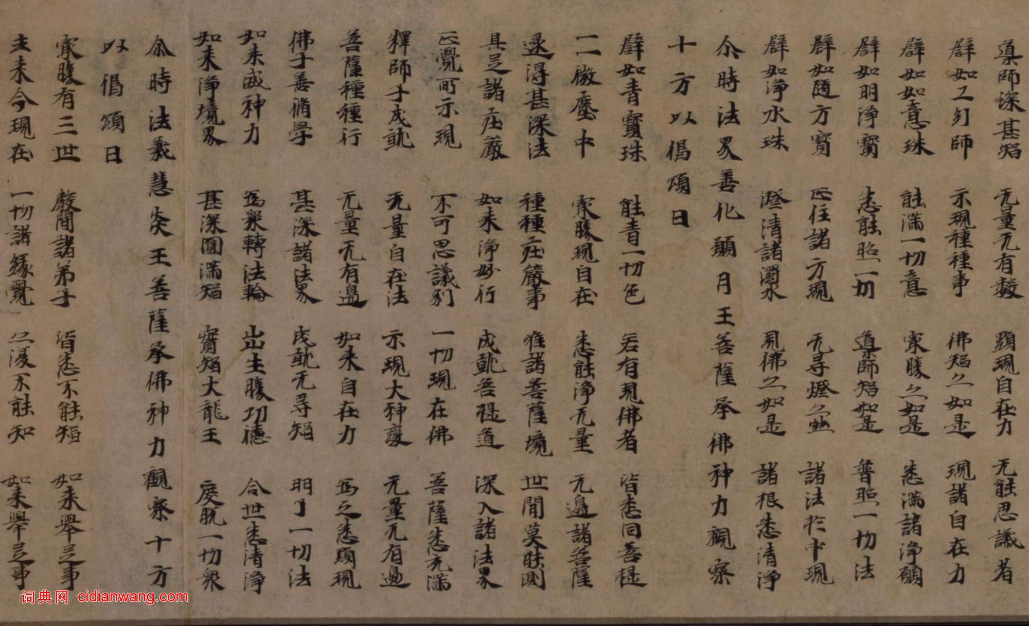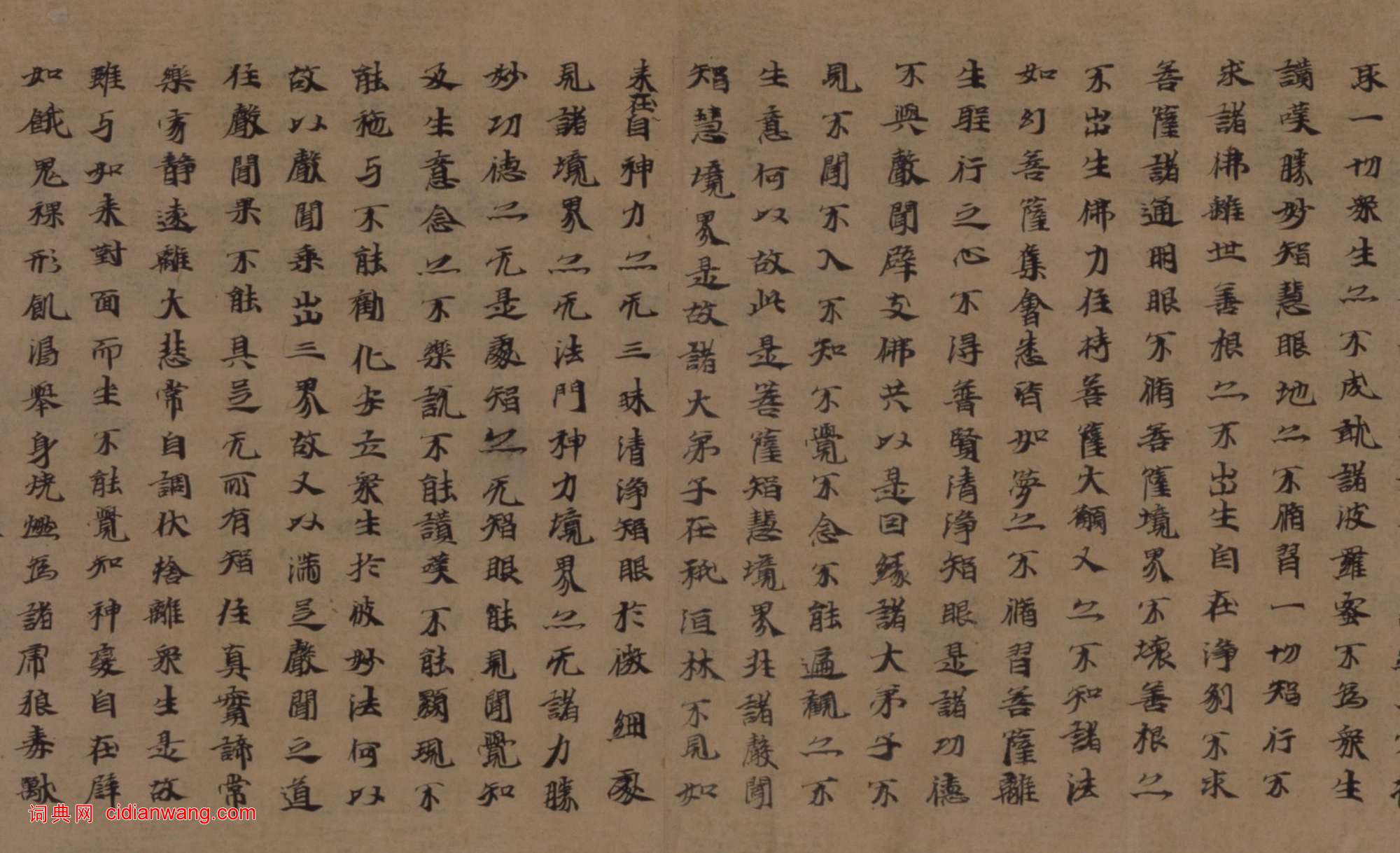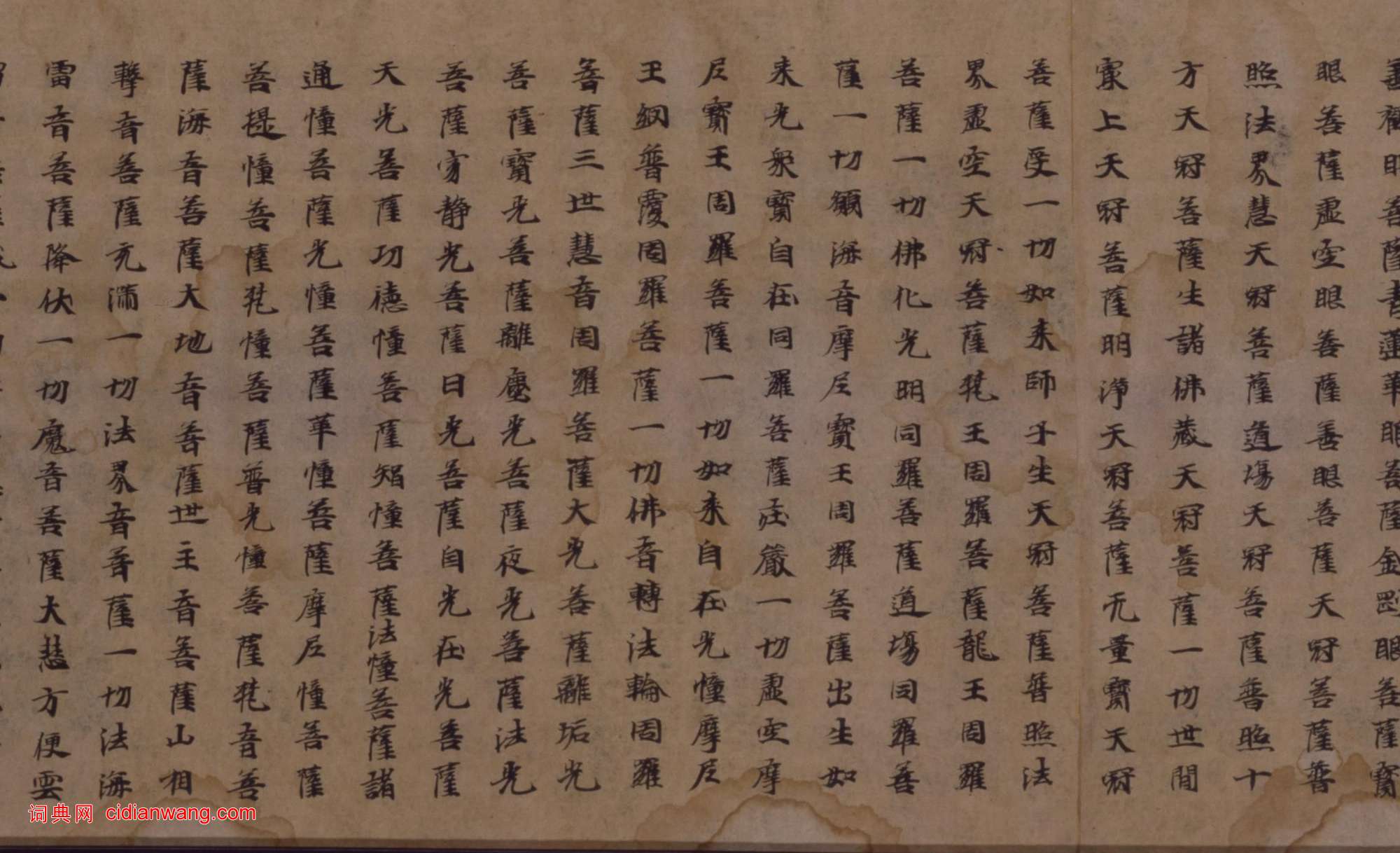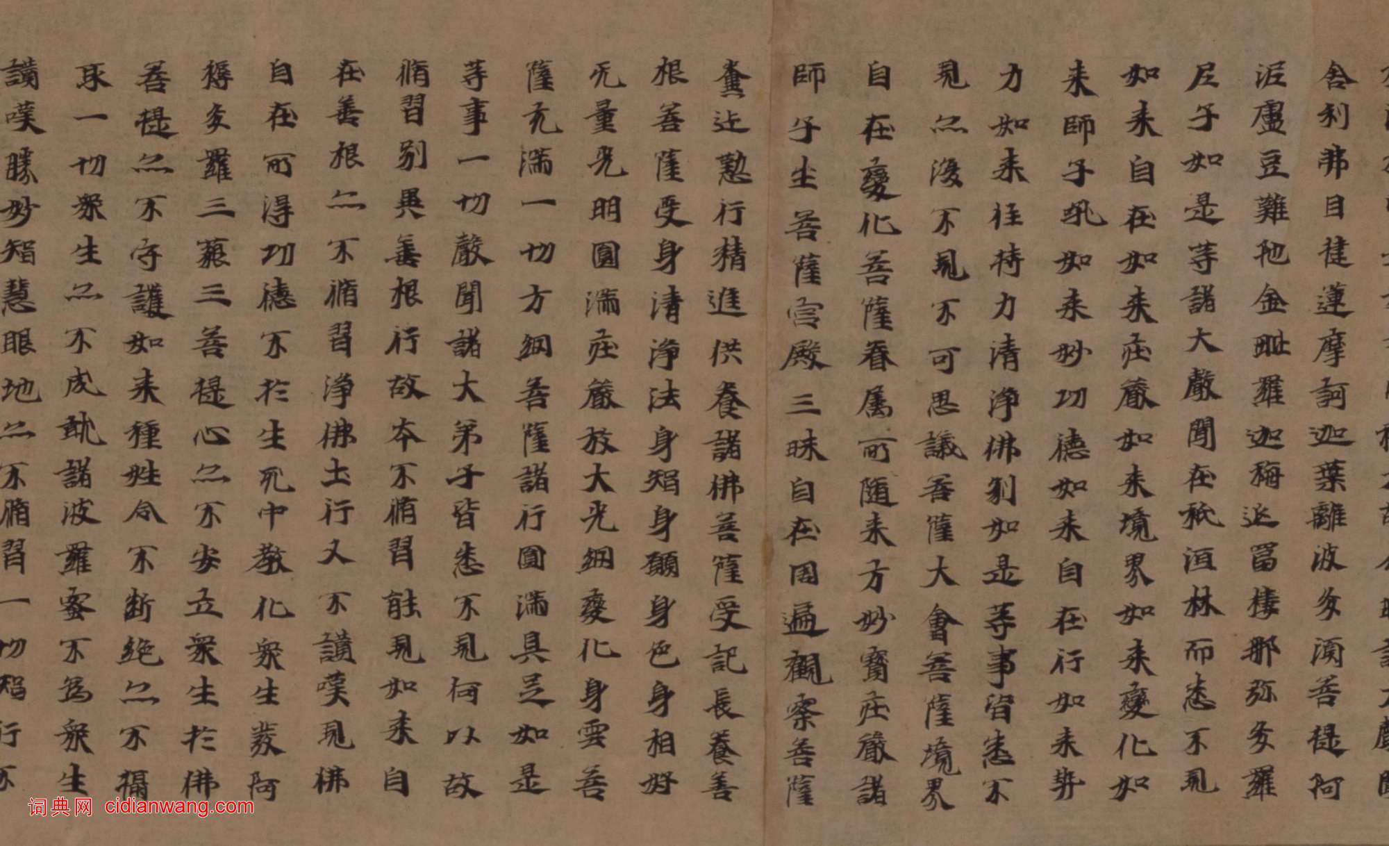 《大方廣佛華嚴經》簡稱《華嚴經》,是佛教的重要經典。古有三種譯本。據考證,此卷所寫為東晉佛陀跋陀羅所譯六十卷本,稱“六十《華嚴》”,共含三十四品。(撰稿人:金運昌)