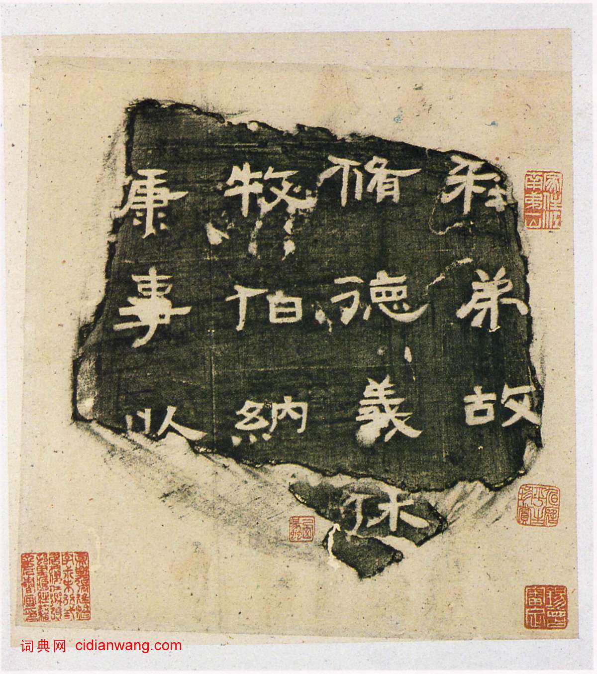 《黃初殘碑》為三國時著名隸書,黃初五年(公元224年),殘存四方, 一方四行共十三字,一方二行共四字,一方三行共十二字,一方二行共六字半。清乾隆間在陝西郃陽縣陸續出土,散藏各家。此本為故官博物院藏清張叔未舊藏初拓本,拓本35×21cm。