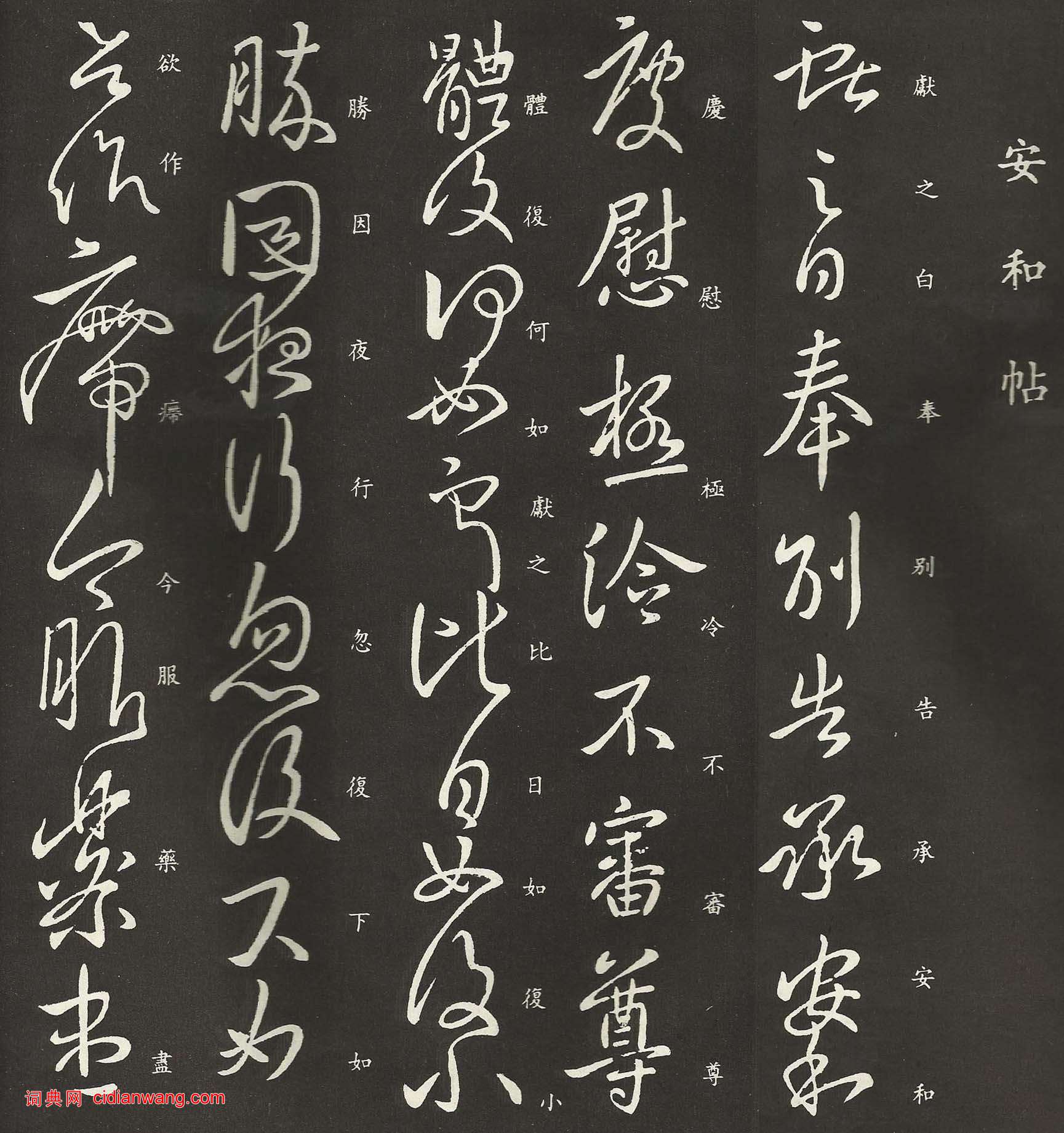 獻之白:奉別告,承安和,慶慰。極冷,不審尊體復何如?獻之比日如復小勝,因夜行忽復下,如欲作廗。今服藥,盡溫爍理,冀當可耳。然異極,都不得復,小失和。卿惡,亦不復得妄近生冷。體氣頓至此,令人絕嘆!行有佳酒便服。