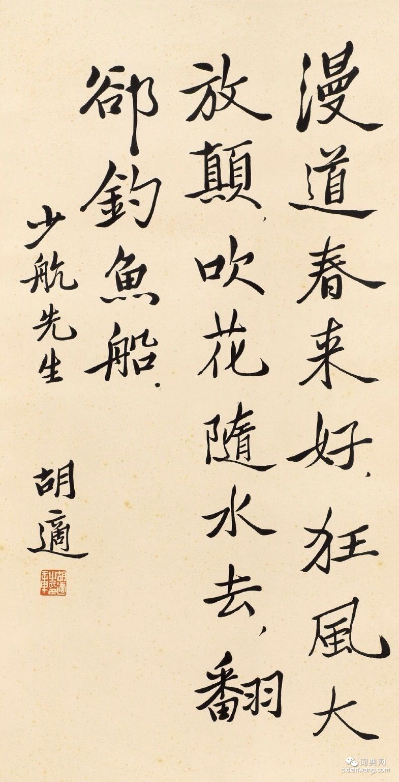 書法欣賞魏晉書法唐朝書法宋朝書法元朝書法明朝書法清朝書法近現代書法字典網>> 歷代書法>> 近現代>> 胡適書法作品欣賞(4)正文 胡適書法作品欣賞(4)作者:胡適 書體:行楷 首 頁 上一頁 1 2 3 4相關文章:金農隸書五言詩 (隸書)金農 隸書五言詩 年代不詳 紙本 縱78.6厘米 橫56.7厘米 上海博物館藏 ...懷素草書《自敘帖》 (草書)“天下第一草書”為唐代書法家懷素的《自敘帖》,書於唐大曆十二年(公元777年)。...張即之行書《致尊堂太安人尺牘》 (行書)張即之《致尊堂太安人尺牘》冊 紙本(牙色印花粉箋) 行書 29.5×47.2c...范仲淹《道服贊》 (小楷)此帖是范仲淹為同年友人“平海書記許兄”所制道服撰寫的一篇贊文,稱友人制道服乃“清...倪元璐行草《致老親翁札》 (行草)倪元璐《致老親翁札》行草書 27.3×32cm 香港中文大學文物館藏(北山堂...董其昌·儲光羲《田家雜興》 (楷書)【釋文】春至鶬鶊鳴,薄言向田墅。不能自力作,黽勉娶鄰女。既念生子孫,方思廣園圃。...戴仁·跋范仲淹《道服贊》 (行楷)戴仁跋范仲淹《道服贊》,行楷書,縱34.8cm,北京故宮博物院藏。北魏《魏靈藏造像記》 (楷書)魏靈藏造像記拓片 龍門二十品《魏靈藏造像記》全稱《魏靈藏薛法紹造像記》,題記楷書...東漢隸書《陽嘉二年題記》 (隸書)東漢 陽嘉二年題記 長95cm 寬50cm 重慶南川市雷劈石崖墓出土 釋文:陽嘉...笪重光行書《宇記憶體知己五言詩扇面》 (行書)笪重光《行書“宇記憶體知己”五言詩扇面》頁 上海博物館藏釋文:?(宇)記憶體知己,相...