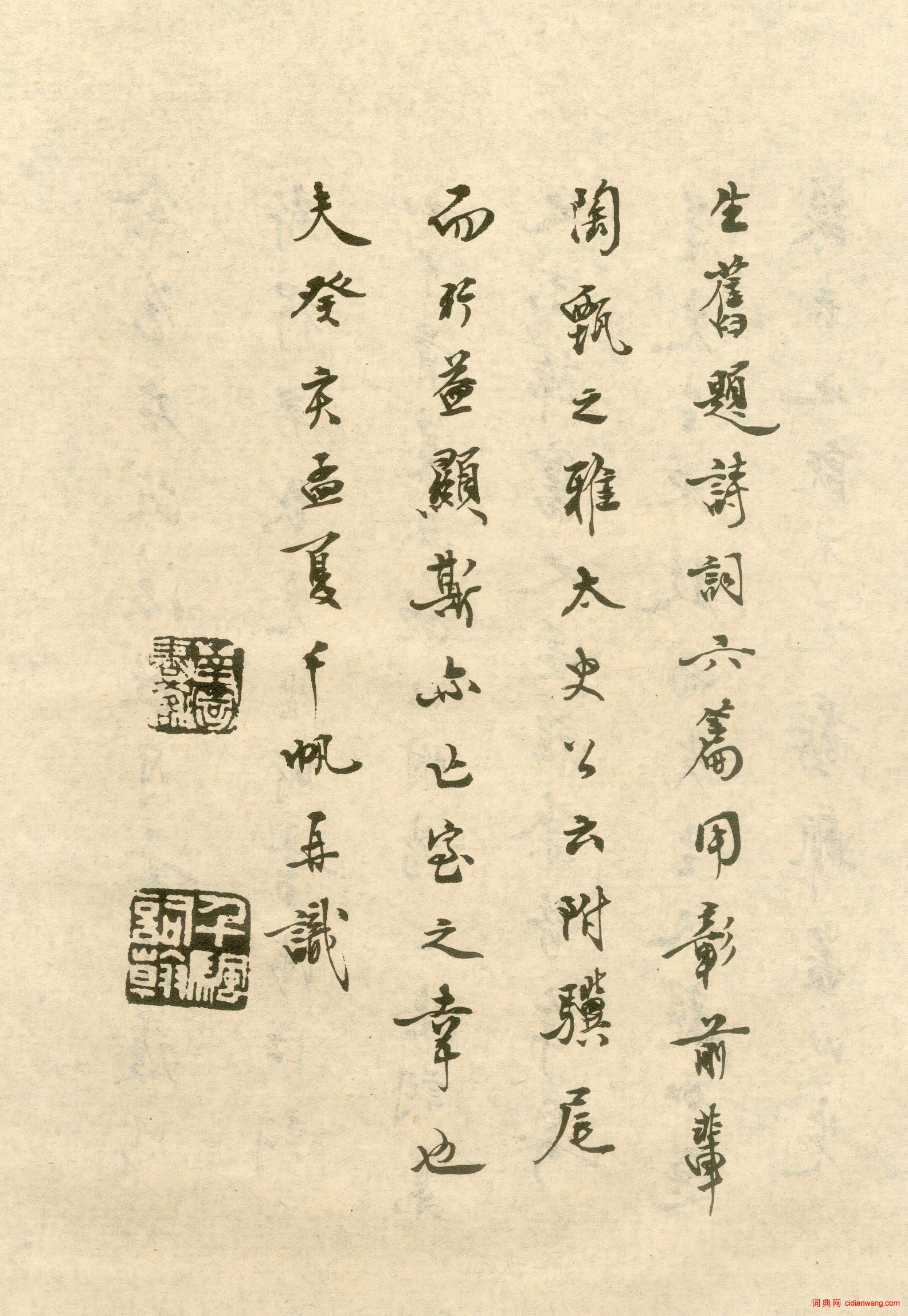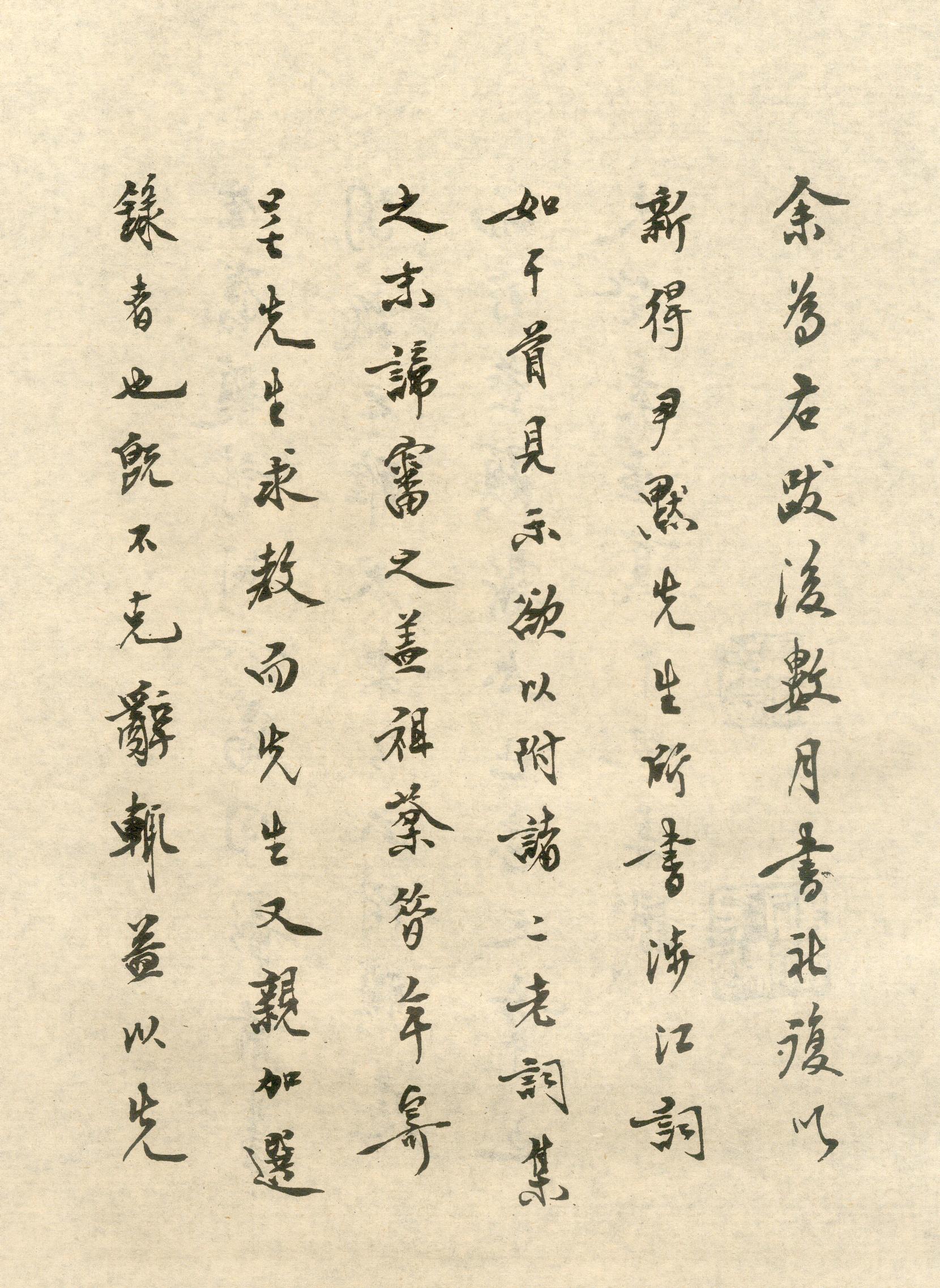 資源下載魏晉書法唐朝書法宋朝書法元朝書法明朝書法清朝書法近現代書法字典網>> 歷代書法>> 近現代>> 沈尹默手書詞稿四種 小楷墨跡 《涉江詞》(18)正文 沈尹默手書詞稿四種 小楷墨跡 《涉江詞》(18)作者:沈尹默 書體:小楷 33 34首 頁 上一頁 9 10 11 12 13 14 15 16 17 18沈尹默的相關書法作品:沈尹默行楷《飽嘗重述七言聯》 沈尹默行書《歐陽修寶劍詩軸》 沈尹默行書《蘇東坡詩冊》 沈尹默楷書《禁經永字八法》 沈尹默行書《遣興五言詩二首軸》 沈尹默行書《澹靜廬詩剩》 沈尹默行書《萬頃九秋七言聯》 沈尹默楷書對聯 沈尹默楷書《正可但知七言聯》 相關文章:何焯《七言詩軸》 (行書)何焯七言詩軸,行書。釋文:不知天隱在何鄉,且欲煙霞跡暫雙。鶴廟未能齊月馭, 鹿門...狄平子 跋戴進《長江萬里圖》 (行書)狄平子跋戴進《長江萬里圖》,縱34.3厘米。美國克利夫蘭美術館藏。狄平子(187...危素跋《任仁發張果老見明皇圖卷》 (小楷)任仁發《張果老見明皇圖卷》 絹本 縱41.5cm,橫107.3cm。 北京故宮博...倪元璐行楷《秋窗月墮七言詩句立軸》 (行楷)倪元璐《秋窗月墮七言詩句立軸》紙本行楷書 121.9×28cm 遼寧省博物館藏...程邃《行書探梅詩軸》 (行書)程邃《行書探梅詩軸》紙本行書 86.3×46.9cm 上海博物館藏釋 文:野航...應均《四體書阮元句四條屏》 (四體)應均《四體書阮元句四條屏》 1937年 浙江永康萬泰美術館釋文: 浙東天一閣所藏...西漢隸書《阜陽漢簡》 (隸書)《阜陽漢簡》為西漢初期簡冊。1977年在阜陽縣雙古堆1號漢墓中發掘出土。墓主夏侯...西漢敦煌漢簡 (草書)一九七九年在敦煌縣馬圈灣出土了大量漢簡,一千二百一十七枚,包括隸、草、行三種書體...白珽·陳君詩帖 (行書)【釋文】陳君才名獵獵起,對客揮毫動盈紙。平生心事七弦知,賞音不獨曰山水。自言家住...柳公權小楷《太上老君常清淨經》 (小楷)柳公權《太上老君常清淨經》 楷書 《太上老君常清淨經》,書法介於柳楷與王羲之小楷...
