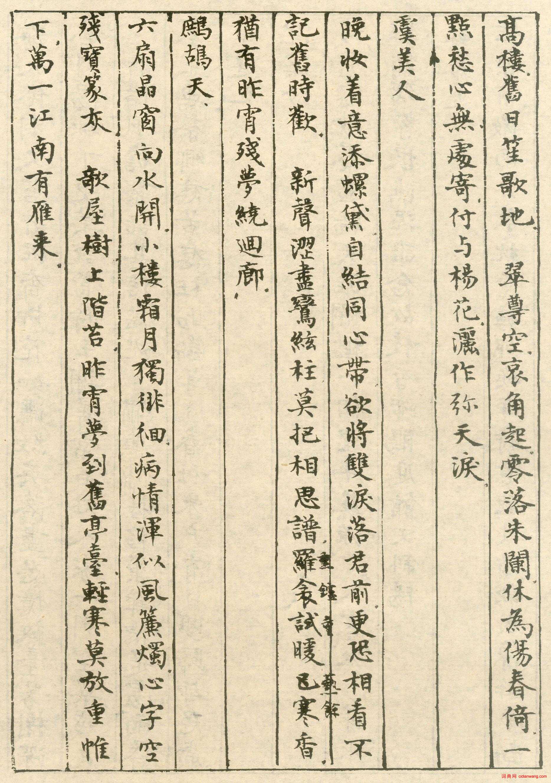 資源下載魏晉書法唐朝書法宋朝書法元朝書法明朝書法清朝書法近現代書法字典網>> 歷代書法>> 近現代>> 沈尹默手書詞稿四種 小楷墨跡 《涉江詞》(4)正文 沈尹默手書詞稿四種 小楷墨跡 《涉江詞》(4)作者:沈尹默 書體:小楷 5 6首 頁 上一頁 1 2 3 4 5 6 7 8 9 10 下一頁 尾 頁沈尹默的相關書法作品:沈尹默行楷《飽嘗重述七言聯》 沈尹默行書《遣興五言詩二首軸》 沈尹默行書《蘇東坡詩冊》 沈尹默行書《景寧雜詩》 沈默《行書馬駿山開七言聯》 沈尹默行書《萬頃九秋七言聯》 沈尹默行書《鮑照白雲詩軸》 沈尹默楷書《孫蕉軒九十嘏壽辭》 沈尹默行書《澹靜廬詩剩》 相關文章:北魏《元倪墓誌》 (楷書)北魏《元倪墓誌》,全稱《魏故寧遠將軍敦煌鎮將元君墓志銘》。北魏正光四年(523)...高鳳翰《行書張在辛赤壁賦書畫卷題跋》 (行書)高鳳翰《行書張在辛赤壁賦書畫卷題跋》 紙本行書 縱23cm 山西省博物院藏釋文:...蘇軾《歸安丘園帖》 (行書)【釋文】軾啟。前日少致區區,重煩誨答,且審台侯康勝,感慰兼及。歸安丘園,早歲共有...楊嘉祚·跋虞世南《摹蘭亭序》 (草書)楊嘉祚跋虞世南《摹蘭亭序》,縱24.5厘米。現藏於北京故宮博物院。蔡襄·謝郎帖 (行書)【釋文】謝郎春初將領大娘以下各安。年下朱長官亦來泉州診候,今見服藥,日覺瘦倦,至...乾隆臨王羲之《蘭亭序》 (行書)在中國歷史上的眾多君王中,很少有像乾隆皇帝那樣對書法藝術達到一種幾近痴迷的程度。...劉炳森楷書《岳陽樓記》 (楷書)劉炳森字樹庵,號海村,幼年自號劉五先生。一九三七年八月出生於上海,祖籍天津武清。...文徵明《長者帖》 (楷書)文徵明《長者帖》,尺牘,楷書,故宮博物院藏。包世臣《楷書警語立軸》 (楷書)包世臣《楷書警語立軸》紙本楷書, 137.5×63.5cm, 北京故宮博物院藏...顏真卿楷書《清遠道士詩》 (楷書)宋拓唐顏真卿楷書欣賞清遠道士詩(傳),忠義堂帖書法。《同沈恭子游虎丘寺有作》是唐...