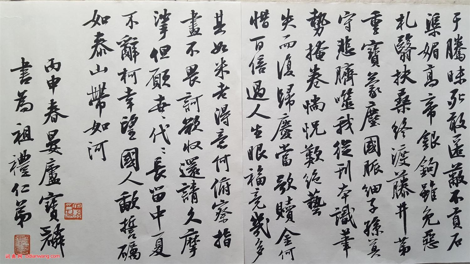 資源下載魏晉書法唐朝書法宋朝書法元朝書法明朝書法清朝書法近現代書法字典網>> 歷代書法>> 近現代>> 曹寶麟行書《米襄陽研山銘歸漢歌並序》(3)正文 曹寶麟行書《米襄陽研山銘歸漢歌並序》(3)作者:曹寶麟 書體:行書 首 頁 上一頁 1 2 3曹寶麟的相關書法作品:曹寶麟行書《米襄陽研山銘歸漢歌並序》 曹寶麟《臨王羲之蘭亭序》 相關文章:米芾行書《天馬賦》並序拓本 (行書)米芾書《天馬賦》並序 釋文: 高君素收古畫。馬翹舉雄傑,感今無此馬,故賦。方唐牧...康里巎巎行草《致彥中尺牘》 (行草)康里巎巎《致彥中尺牘》紙本 30.8×55.6cm 台北故宮博物院藏釋文:康里...米芾行書《寄魏泰詩帖》 (行書)米芾《寄魏泰詩帖》(即《與魏泰唱和詩帖》疑為摹本 ) 紙本 行書 縱26厘米 橫...唐順之《草書贈江陰陳隱君詩卷》 (草書)唐順之《草書贈江陰陳隱君詩卷》 紙本草書 27.5×74.6cm 上海博物館藏...李陽冰篆書《城隍廟碑》 (篆書)李陽冰《城隍廟碑》 又稱《縉雲縣城隍廟記碑》,唐乾元二年(759)刻,李陽冰為本...徐悲鴻給齊白石的拜節信 (行書)下面這封信,是上世紀50年代初端午節的前一天,徐悲鴻附帶著拜節的禮品差人送給齊白...張方平《名茶帖》 (行書)【釋文】賢郎在侍下 留錢塘也 今有慰疏 告為附達 寵惠名茶 不任愧感愧感 中間示...傅山《草書李白秋登宣城謝脁北樓詩》 (草書)傅山 《草書李白秋登宣城謝脁北樓詩》軸 絹本 200cm×50cm 山西省...文徵明大字行書《題宋高宗賜岳飛手敕》 (行書)文徵明書法題跋《宋高宗賜岳飛手敕》,1559年文衡山90歲行書題宋高宗賜岳飛手敕...沈荃《行書臨爭座位帖軸》 (行書)沈荃《行書臨爭座位帖軸》綾本行書 238×50cm 天津博物院藏 【資料來源】...