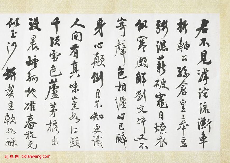 釋文:君不見滹沱流澌車折軸。公孫倉皇奉豆粥。濕薪破竈自燎衣。飢寒頗解劉文叔。又不見金谷敲冰草木春。帳下烹煎皆美人。萍虀豆粥不傳法。咄嗟而辦石季倫。干戈未解身如寄。聲色相纏心已醉。身心顛倒自不知。更識人間有真味。豈如江頭千頃雪色蘆。茅檐出沒晨煙孤。地碓舂秔光似玉。沙缾煮豆軟如酥。我老此身無著處。賣書來問東家住。臥聽雞鳴粥熟時。蓬頭曳履君家去。