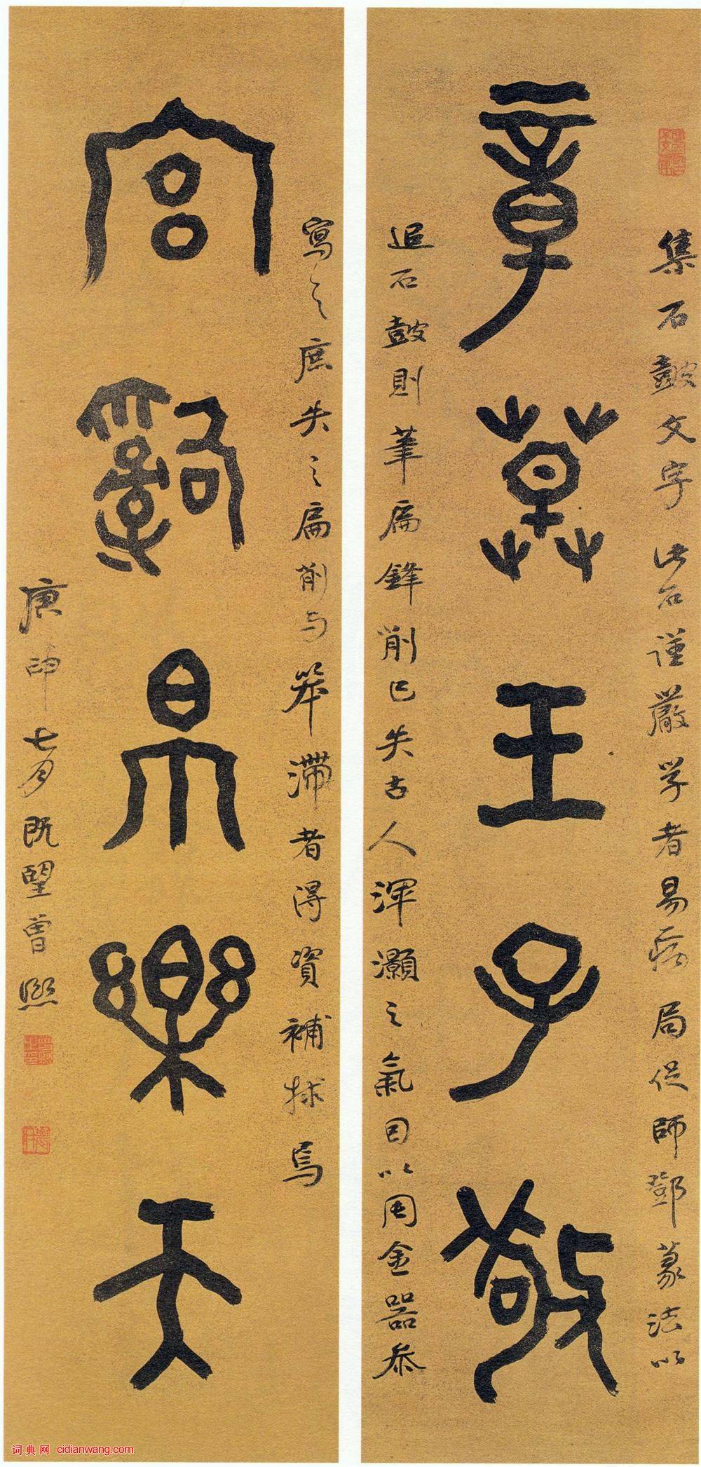 曾熙《篆書章草宮辭五言聯》紙本篆書 130×31cm×2 1920年作