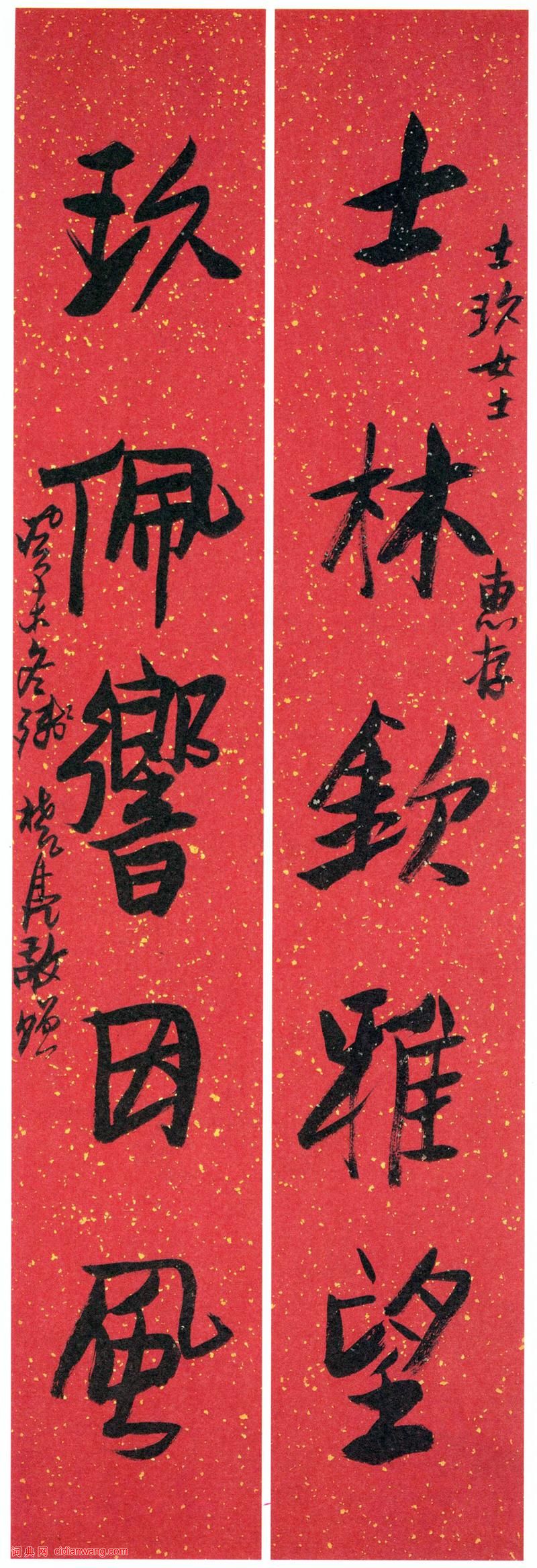 書法欣賞魏晉書法唐朝書法宋朝書法元朝書法明朝書法清朝書法近現代書法字典網>> 歷代書法>> 近現代>> 來楚生行書《士玖嵌名五言聯》正文 來楚生行書《士玖嵌名五言聯》作者:來楚生 書體:行書 來楚生《士玖嵌名五言聯》紙本(灑金蠟箋)行書 130×21cm×2 1943年書 上海書畫出版社藏 釋文:士林欽雅望,玖佩響因風。士玖女士惠存,冬殘楚鳧敬贈。【資料來源】《海派代表書家系列作品集——來楚生》(上海書畫出版社 可嘉掃描)來楚生的相關書法作品:來楚生行書《士玖嵌名五言聯》 來楚生隸書《養成準備七言聯》 來楚生行書《臨黃道周榕壇問業軸》 來楚生行書《錄黃庭堅句七言聯》 來楚生隸書《毛澤東聯句》 相關文章:東晉《王丹虎墓誌》 (隸書)東晉《王丹虎墓誌》東晉《王丹虎墓誌》,志為東晉昇平三年(公元359年)刻,磚志,...程邃《行書探梅詩軸》 (行書)程邃《行書探梅詩軸》紙本行書 86.3×46.9cm 上海博物館藏釋 文:野航...黃庭堅行書《糟姜帖》 (行書)黃庭堅《糟姜帖》(又稱《承惠帖》) 紙本行書 28.9×37.6cm 台北故宮...趙時棡篆書《詩經七月》 (篆書)趙時棡篆書《詩經.七月》 刊於《書法》雜誌1986.3 釋文: 七月...蔡京行書《宮使帖》 (行書)|蔡京(1047-1126),宋代書家。字元長,興化汕遊人。登熙寧三年進士第。徽...彭睿壦行草《岑參詩軸》 (行草)彭睿壦《行草岑參詩軸》 廣州市美術館(現廣州藝術博物院)藏釋文:今年花似去年好,...董其昌行書《三思疏》 (行書)董其昌行書魏徵《諫太宗十思疏》。【原文】臣聞求木之長者,必固其根本;欲流之遠者,...西漢敦煌漢簡 (草書)一九七九年在敦煌縣馬圈灣出土了大量漢簡,一千二百一十七枚,包括隸、草、行三種書體...徐生翁《又有時見行書七言聯》 (行書)徐生翁《又有時見行書七言聯》 釋文:又有石榴才一幅,時見松櫟皆千圍。辰生先生屬。...黃庭堅《教審帖》 (行書)黃庭堅《教審帖》紙本行書 27.1×43.1cm釋文:庭堅頓首,辱教審侍奉萬福...